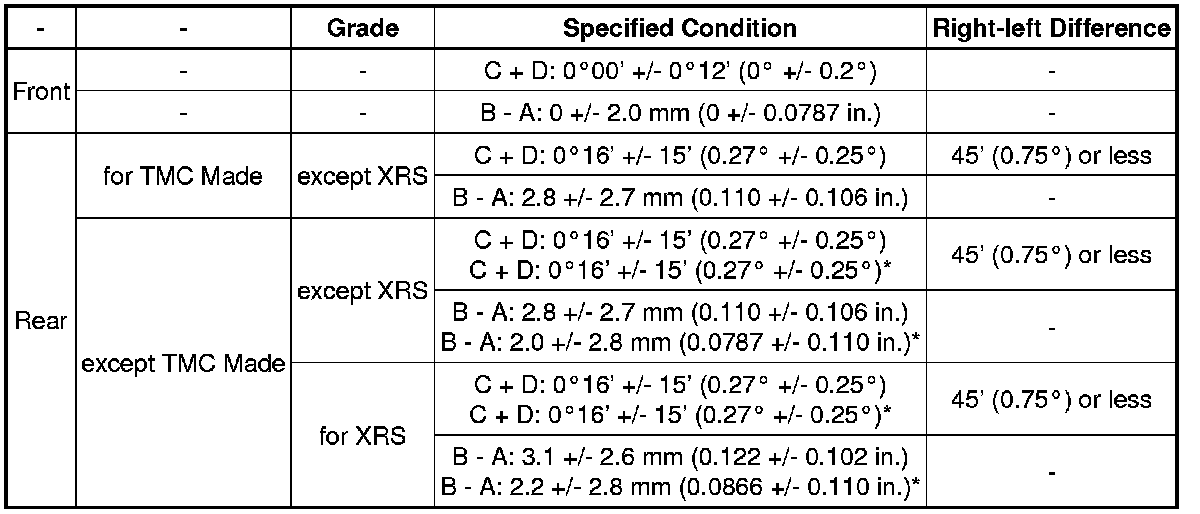 SPECIFICATIONS: ALIGNMENT / HANDLING DIAGNOSIS: SERVICE DATA