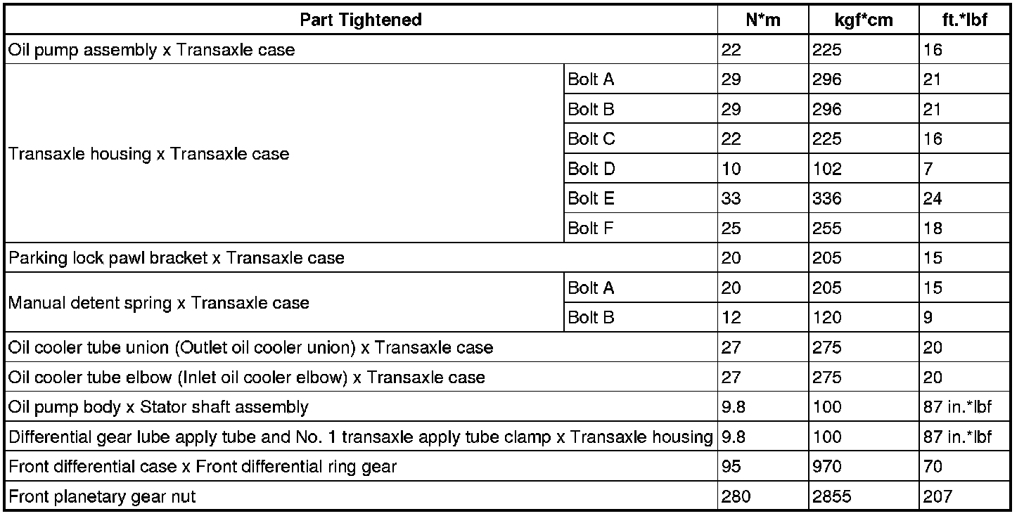SPECIFICATIONS: U250E AUTOMATIC TRANSMISSION / TRANSAXLE: TORQUE SPECIFICATIONS