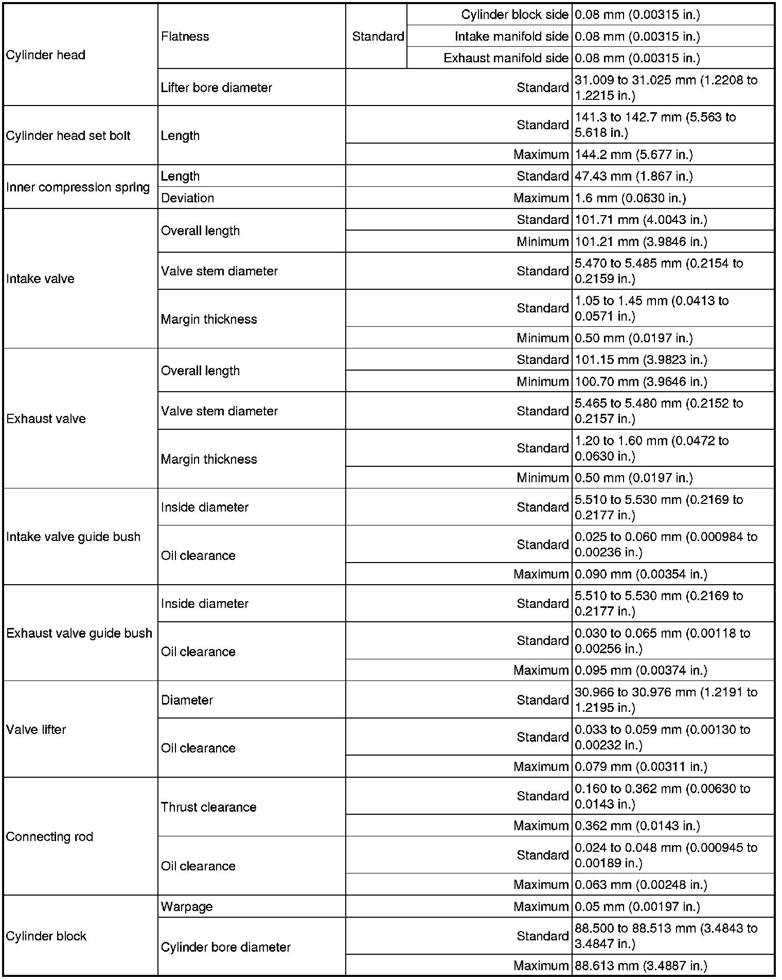SPECIFICATIONS: 2AZ-FE ENGINE MECHANICAL: SERVICE DATA