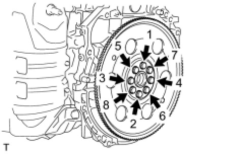 In several steps, uniformly install and tighten the 8 bolts in the sequence shown in the illustration.