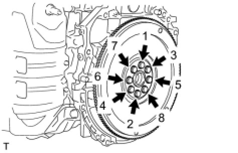 In several steps, uniformly install and tighten the 8 bolts in the sequence shown in the illustration.