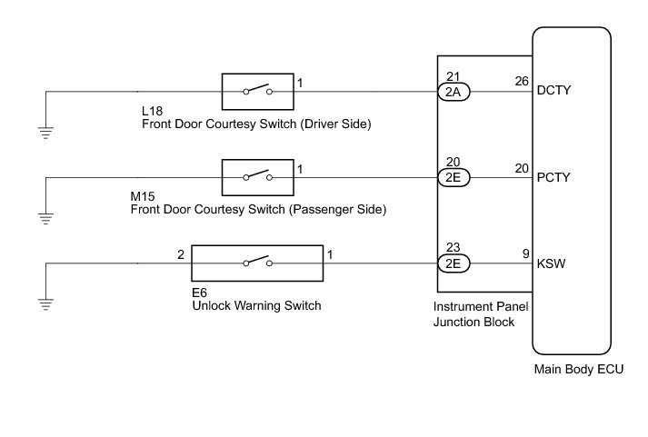 When the key is in the ignition key cylinder or the door courtesy light ON signal is output to the main body ECU (instrument panel junction block), performing the door lock operation with the lock switch does not lock the door.