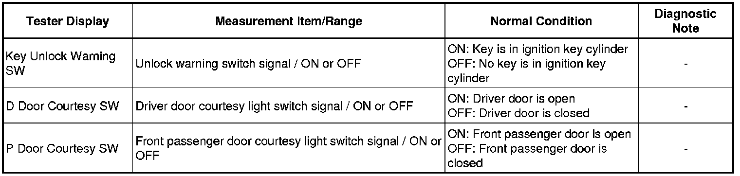 1. READ VALUE USING TECHSTREAM (UNLOCK WARNING SWITCH)
