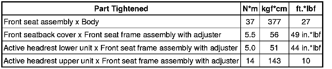 SPECIFICATIONS: SEAT: TORQUE SPECIFICATIONS