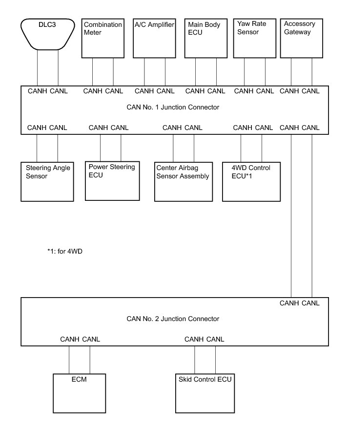 (c) The connection diagram of the components which are connected to the CAN junction connector