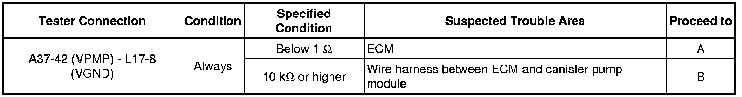 B -- CHECK HARNESS AND CONNECTOR (ECM - CANISTER PUMP MODULE)