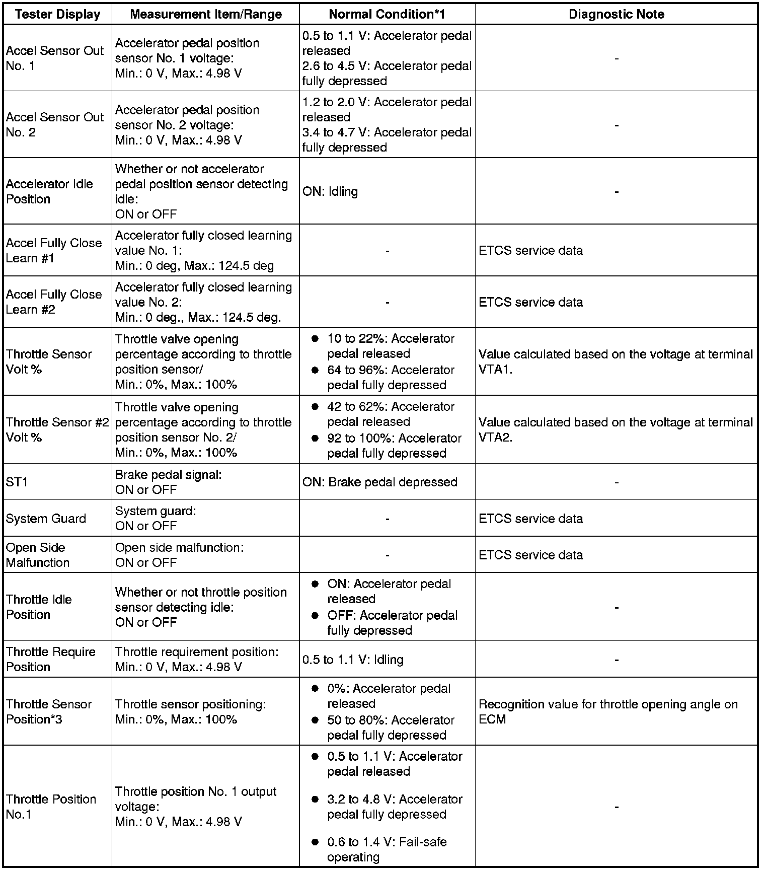 * *3: Excluding throttle valve operating percentage due to Idle Speed Control (ISC).