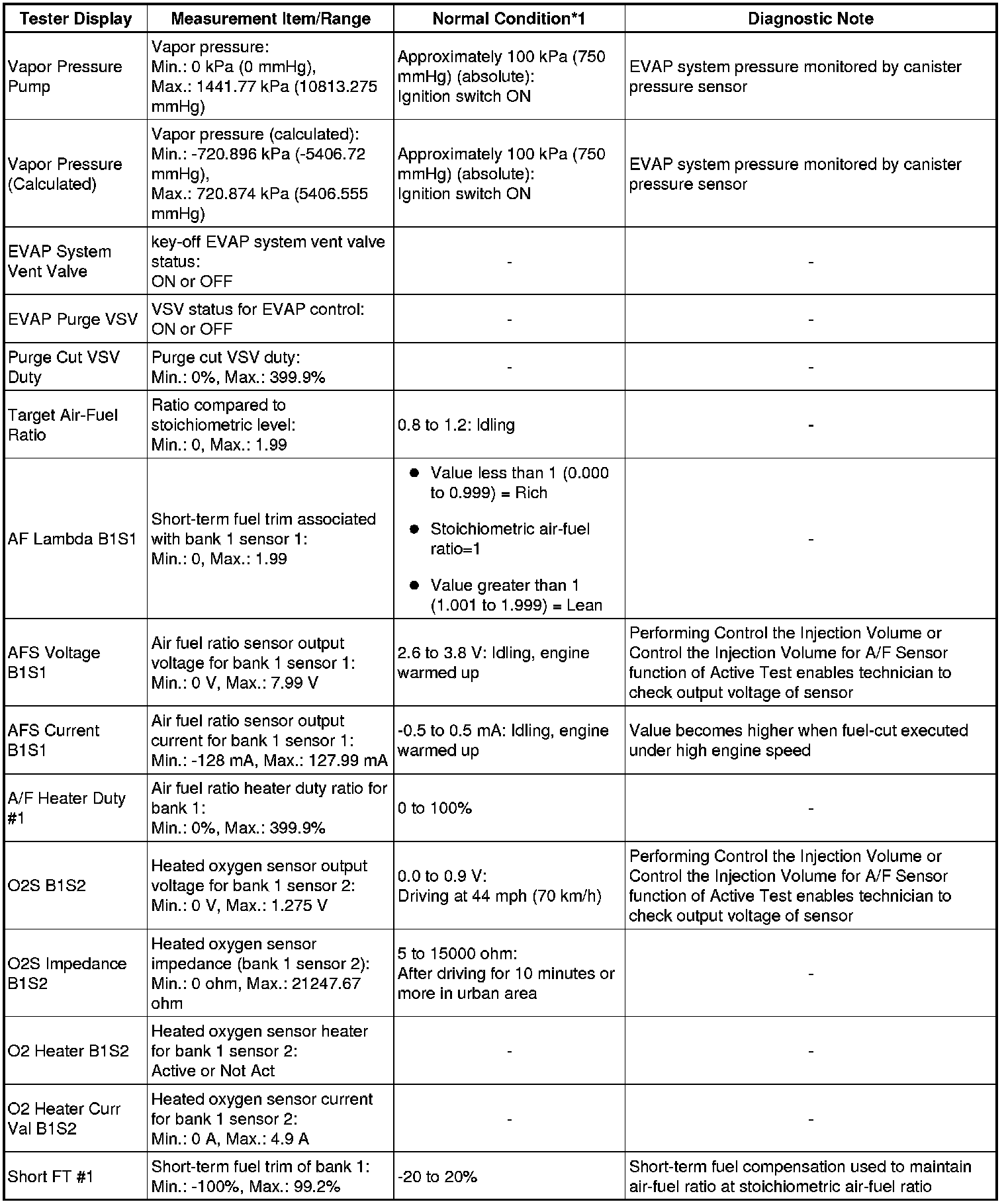 * *1: If no idling conditions are specified, the shift lever should be in N (neutral) or P, and the A/C switch and all accessory switches should be OFF.