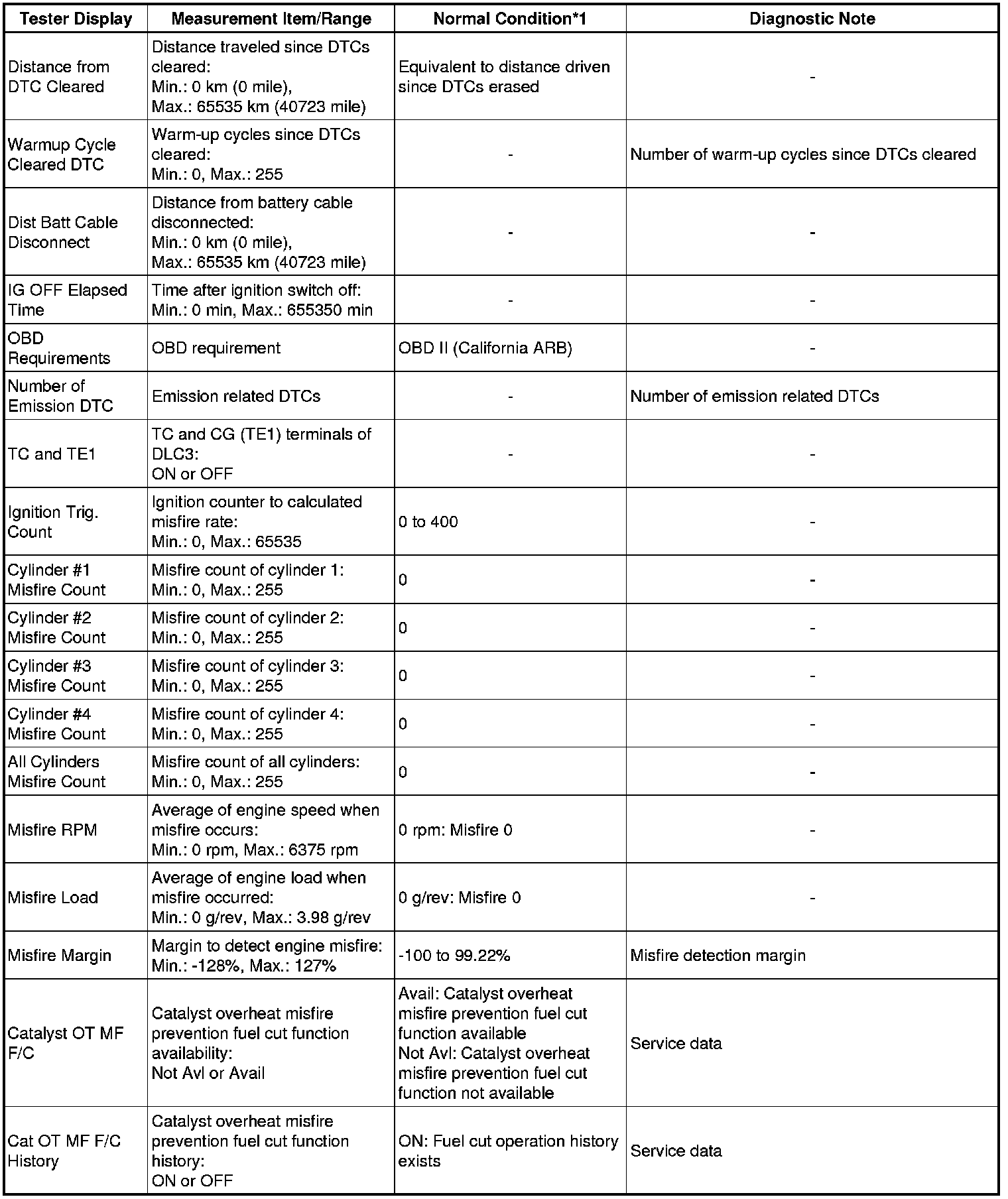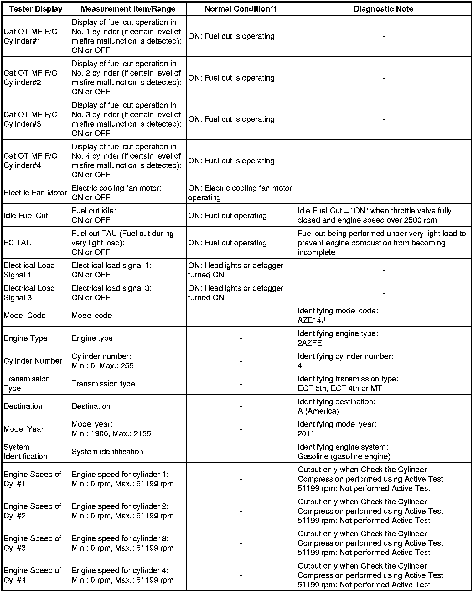 *2: When cranking the engine, each cylinder measures the engine speed.