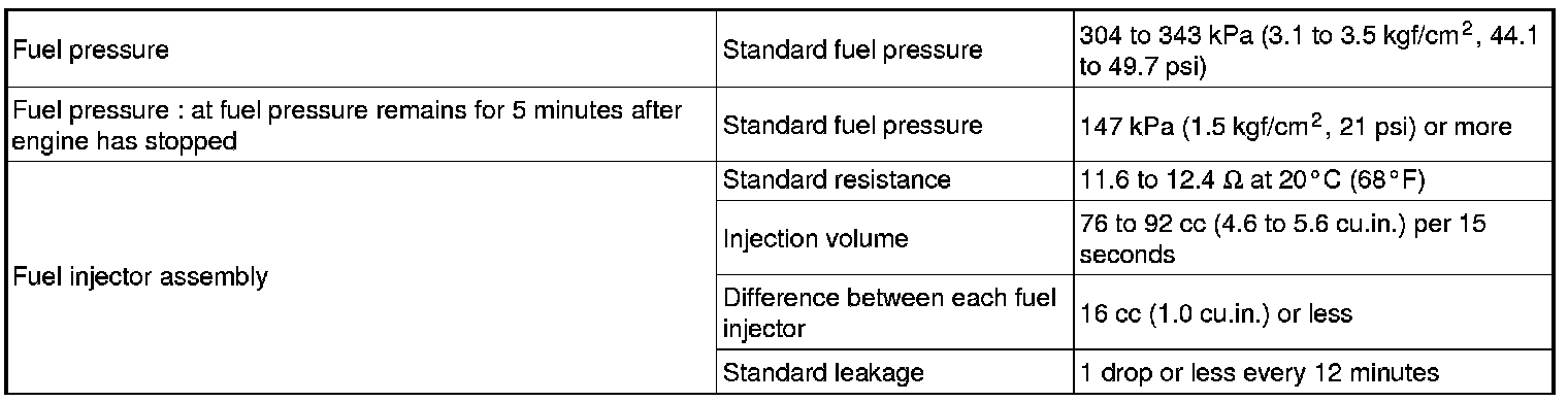 Fuel Pressure: Specifications