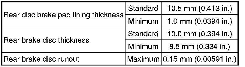 SPECIFICATIONS: BRAKE (REAR): SERVICE DATA