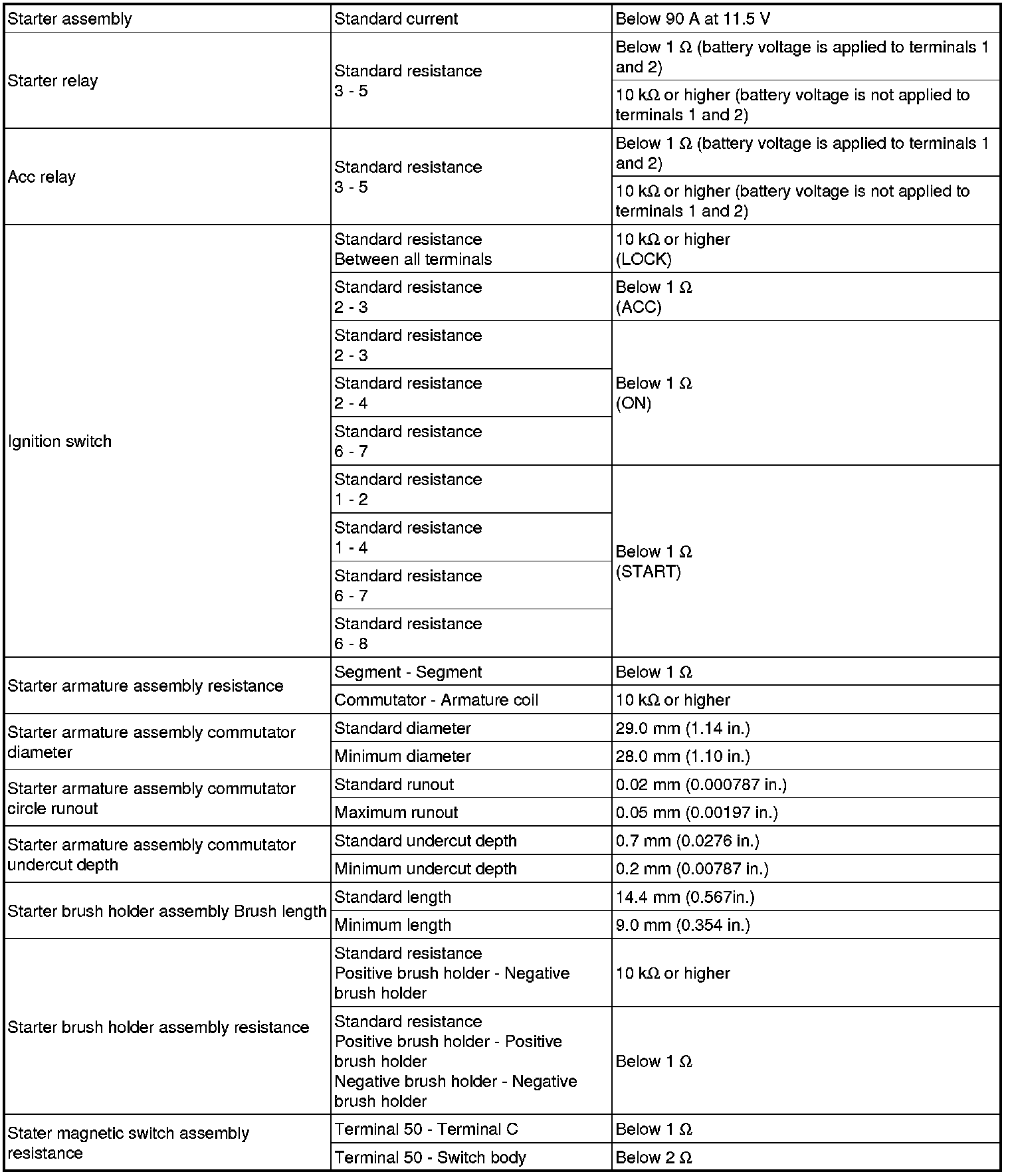 SPECIFICATIONS: 2AZ-FE STARTING: SERVICE DATA