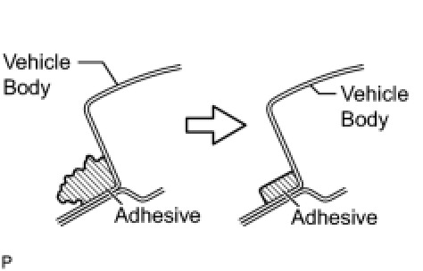 (1) Using a knife, cut away excess adhesive on the contact surface of the vehicle body, as shown in the illustration.