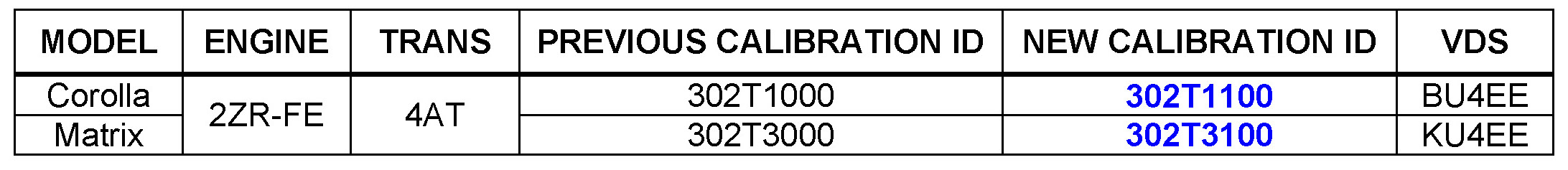 - Calibration ID(s) [Refer to the Calibration Identification Chart for the NEW CALIBRATION ID]