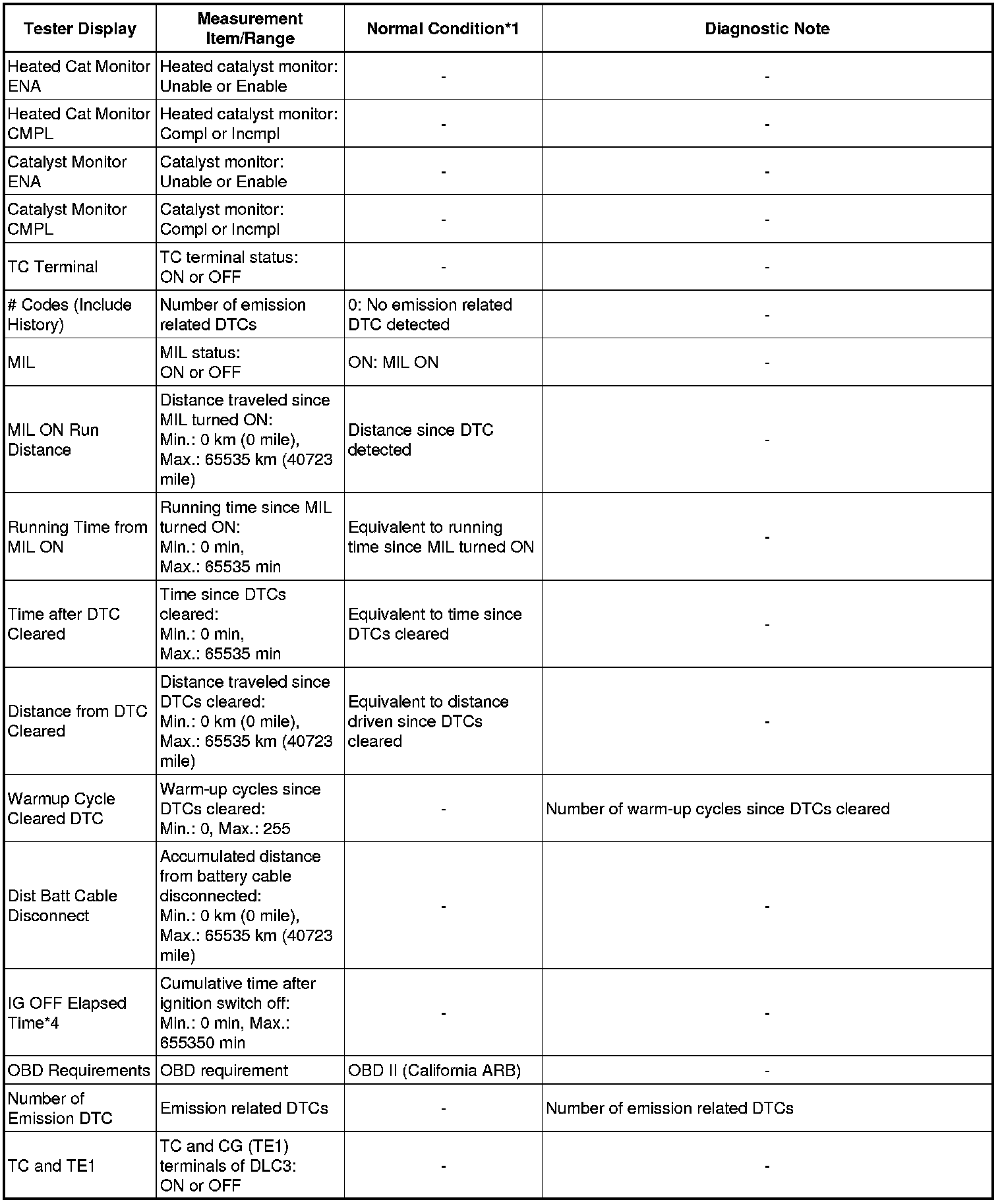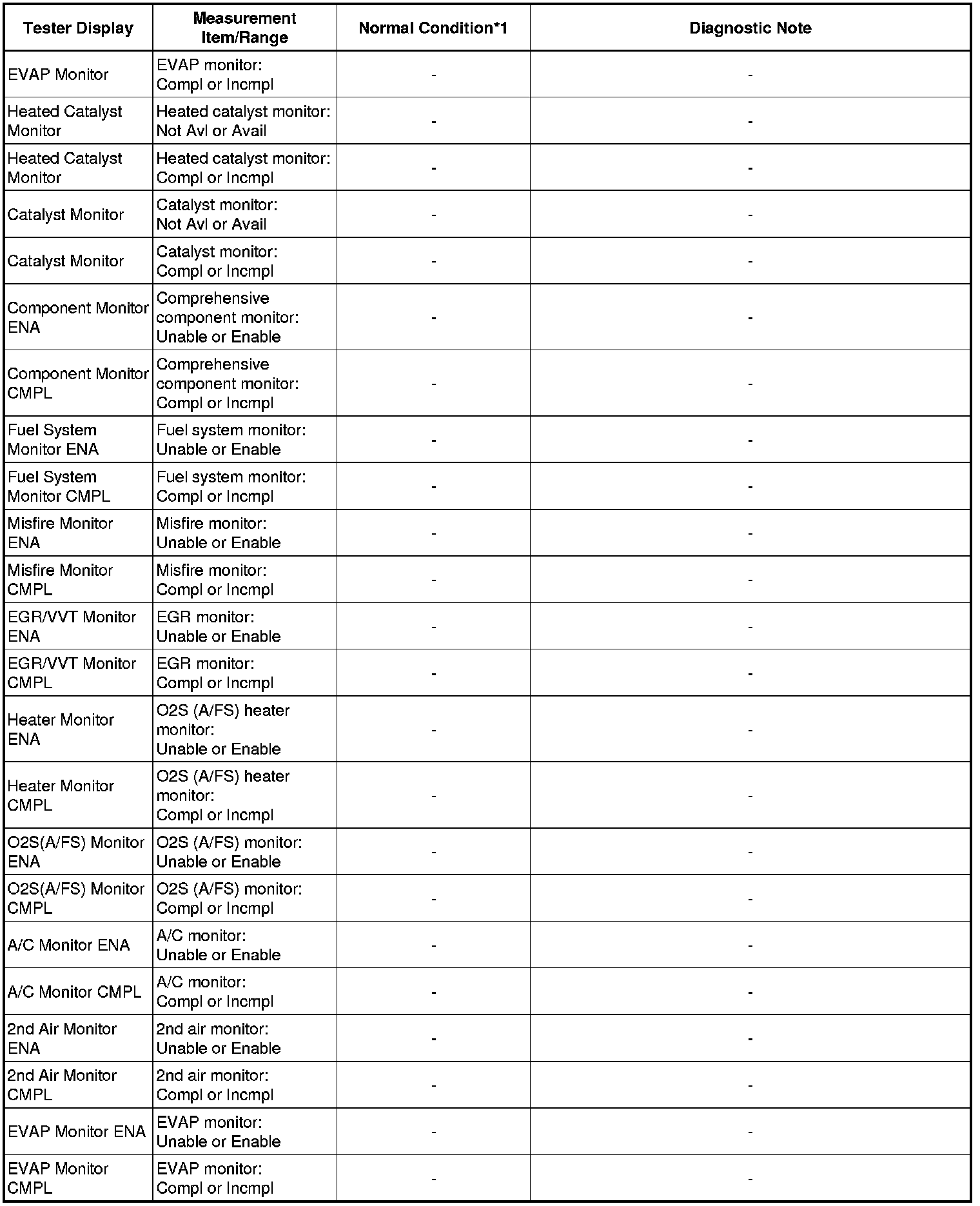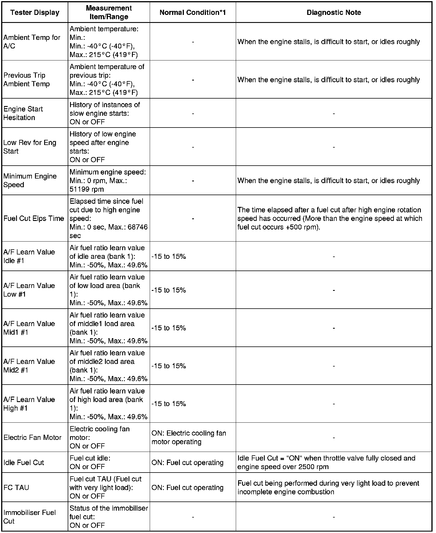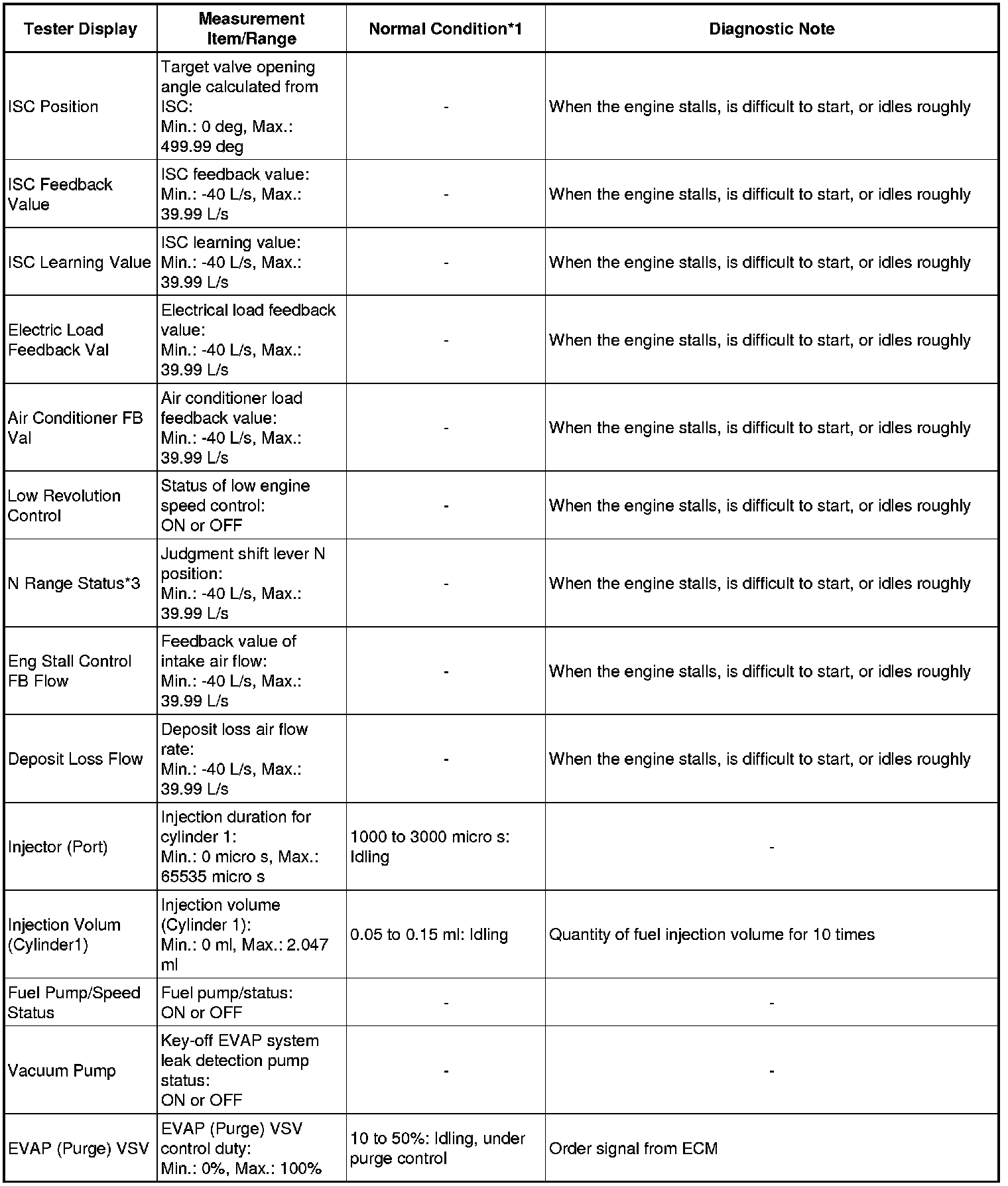 * *1: If no idling conditions are specified, the shift lever should be in N (neutral) or P, and the A/C switch and all accessory switches should be off.