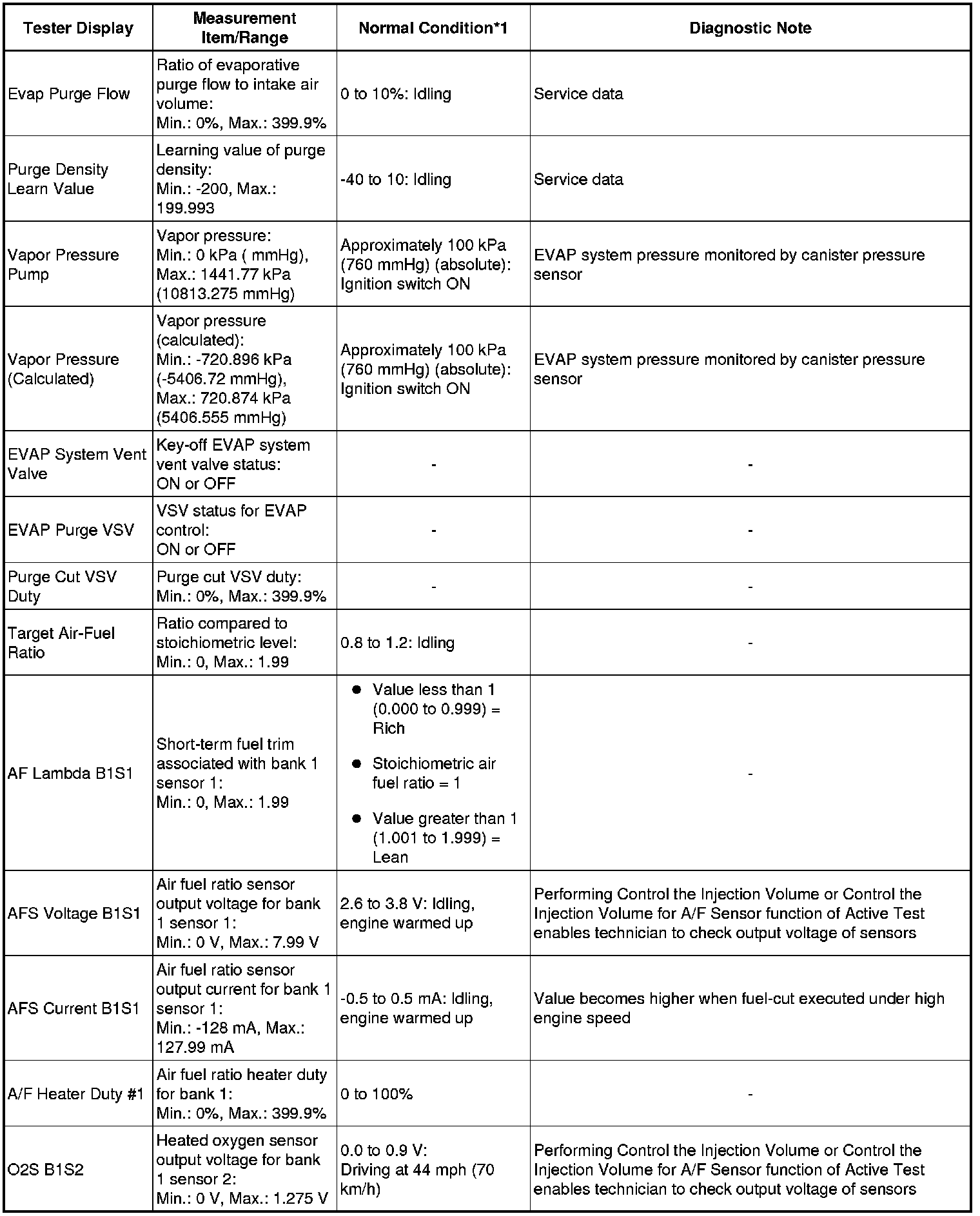 Using the Techstream to read the Data List allows the values or states of switches, sensors, actuators and other items to be read without removing any parts. This non-intrusive inspection can be very useful because intermittent conditions or signals may be discovered before parts or wiring is disturbed. Reading the Data List information early in troubleshooting is one way to save diagnostic time.