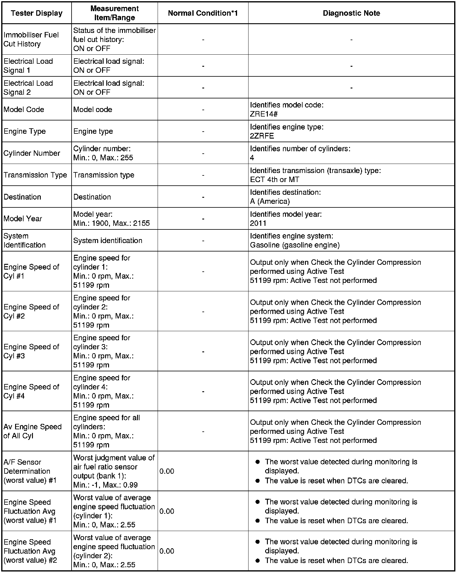 *2: When cranking the engine, each cylinder measures the engine speed.
