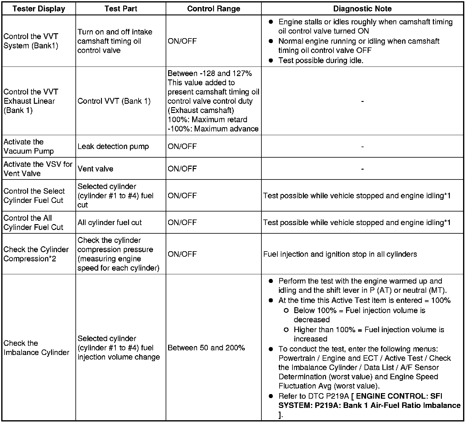 * *2: Values are only displayed when performing the Active Tests: Control the VVT System (Bank 1), Control the VVT Linear (Bank1) and Control the Exhaust Liner (Bank 1). For other Active Tests, the value will be 0.