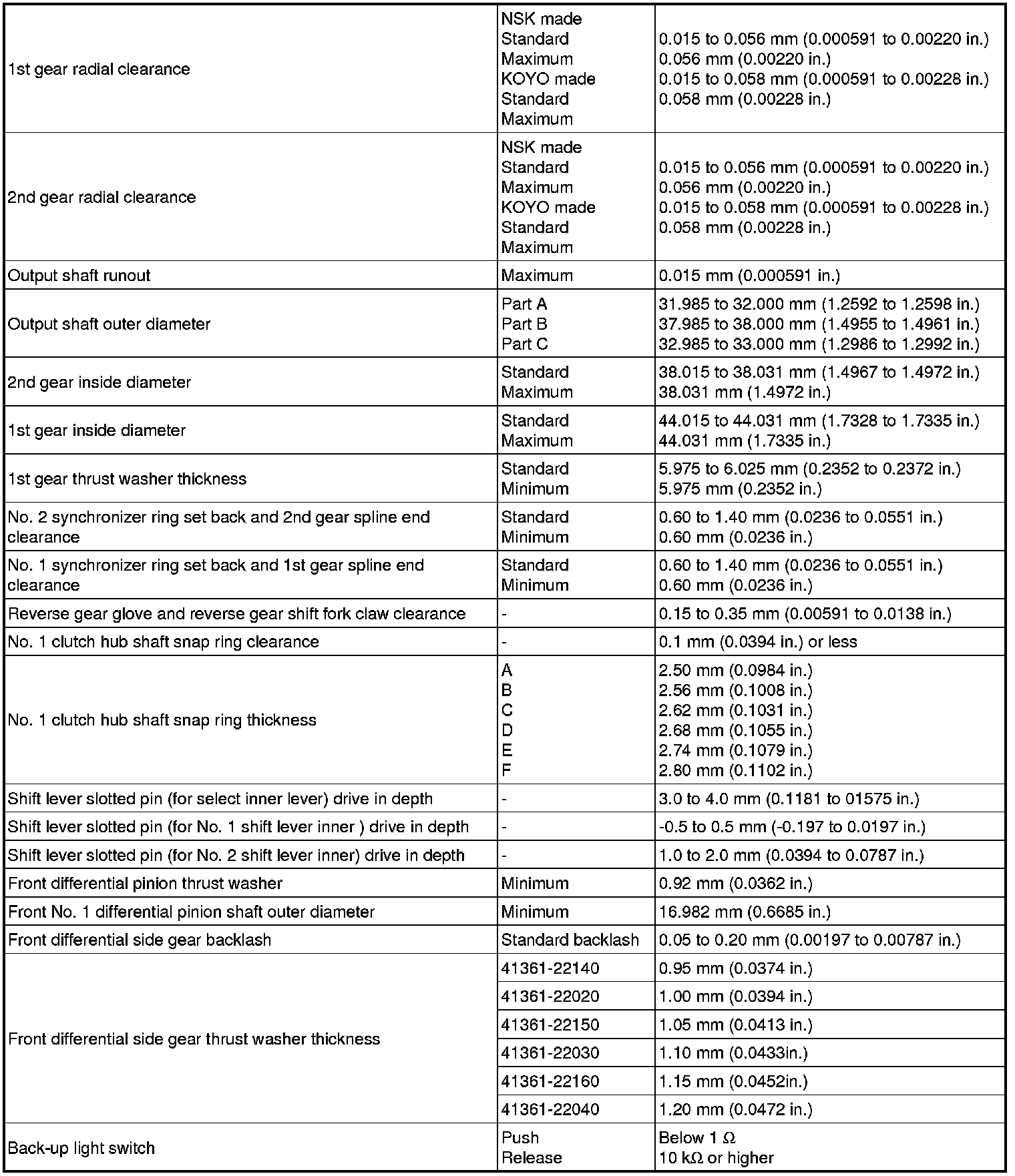 SPECIFICATIONS: C59 MANUAL TRANSMISSION / TRANSAXLE: SERVICE DATA