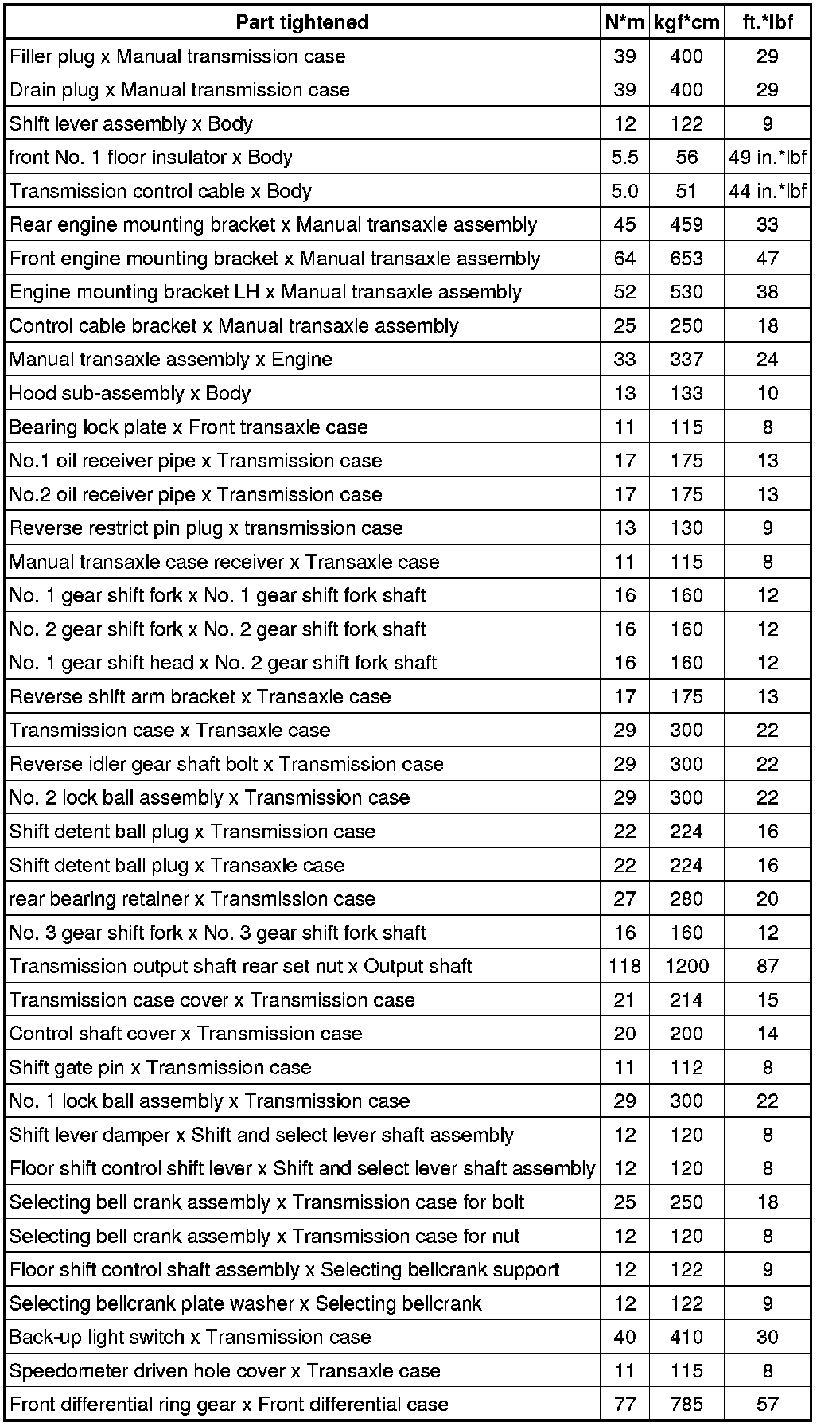 SPECIFICATIONS: C59 MANUAL TRANSMISSION / TRANSAXLE: TORQUE SPECIFICATIONS