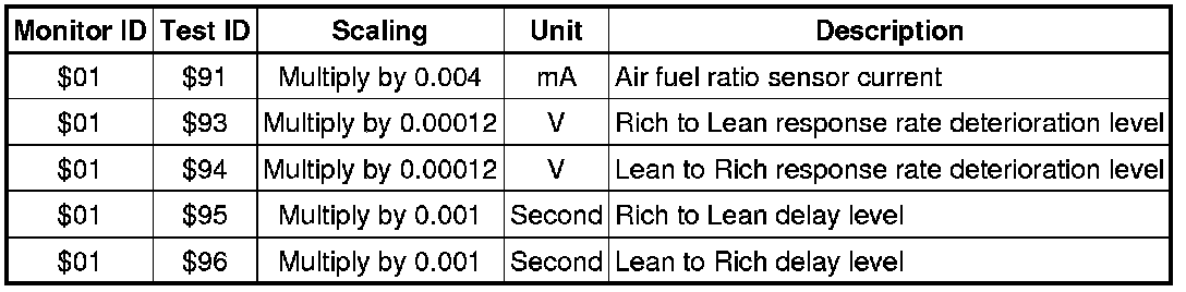 If you use a generic scan tool, multiply the test value by the scaling value listed below.