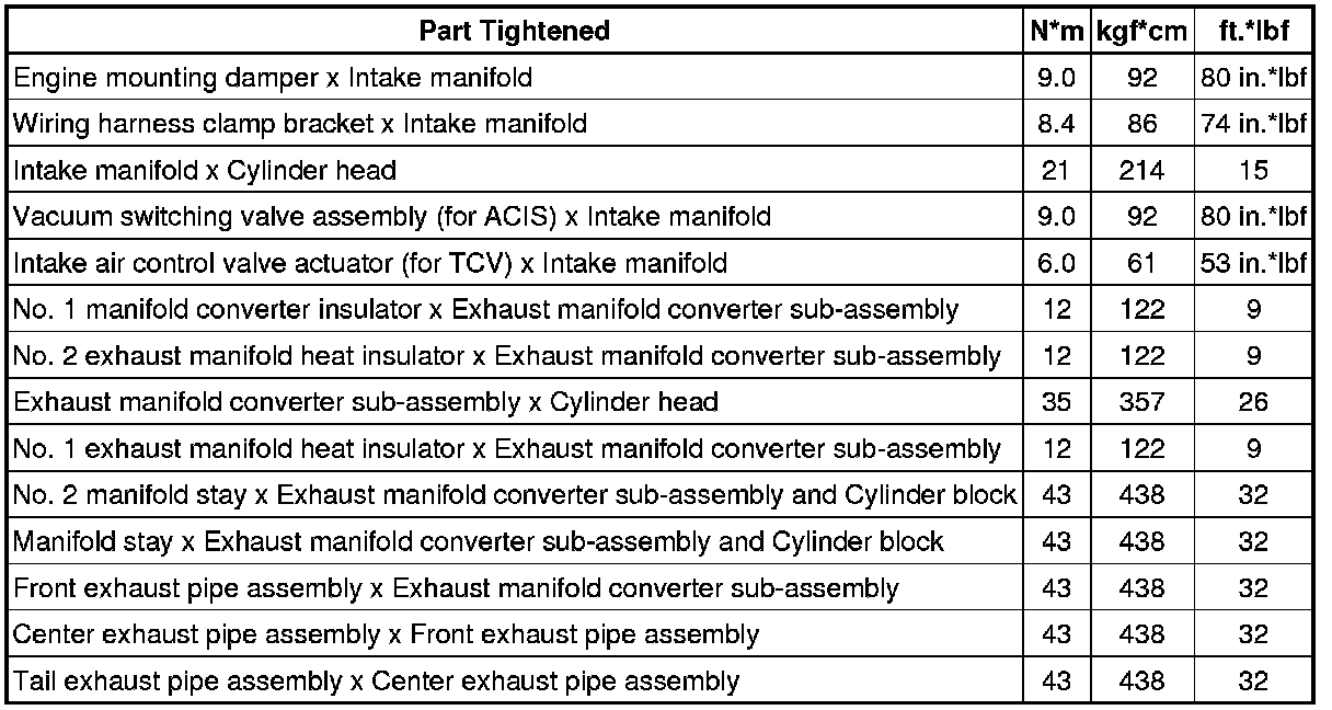 SPECIFICATIONS: 1AR-FE INTAKE / EXHAUST: TORQUE SPECIFICATIONS