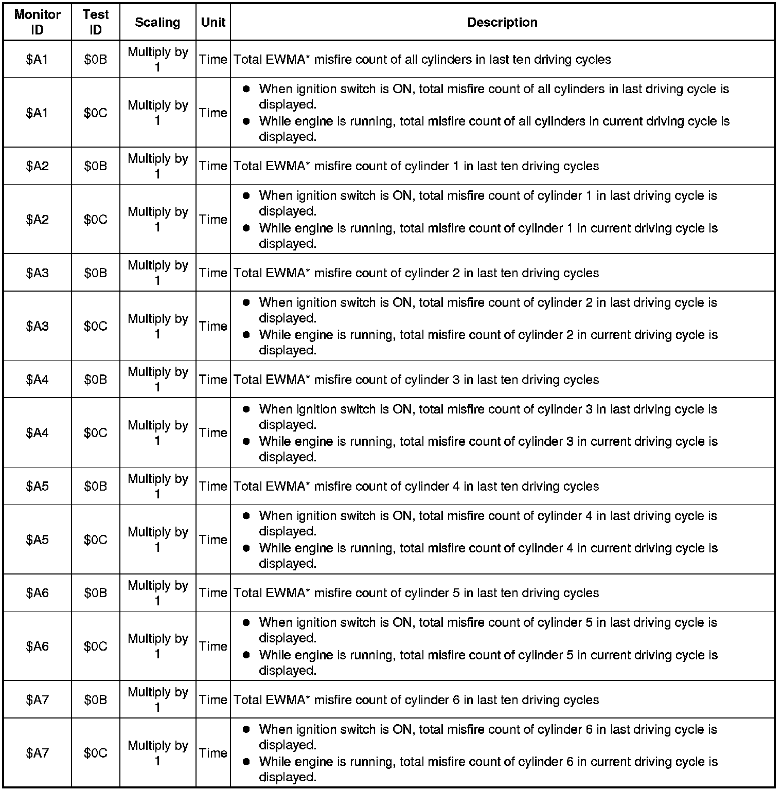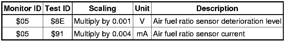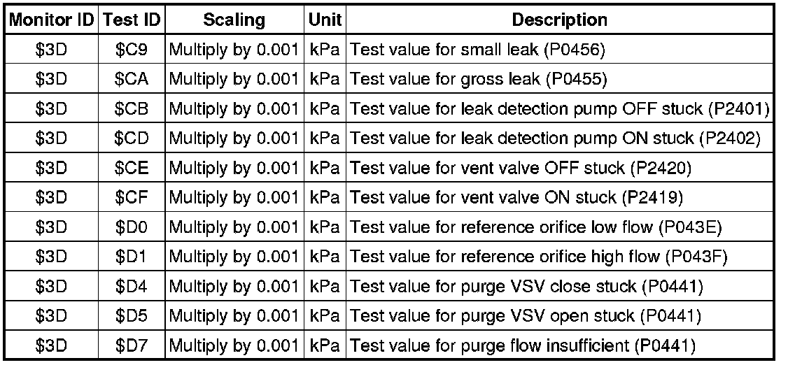 If you use a generic scan tool, multiply the test value by the scaling value listed below.