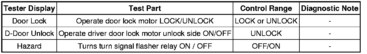 DOOR LOCK: WIRELESS DOOR LOCK CONTROL SYSTEM: DATA LIST / ACTIVE TEST