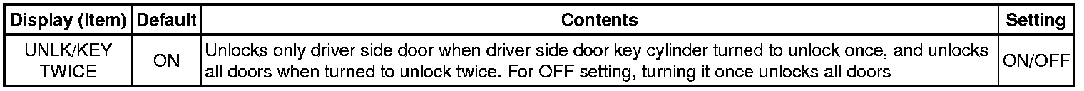 DOOR LOCK: POWER DOOR LOCK CONTROL SYSTEM: CUSTOMIZE PARAMETERS