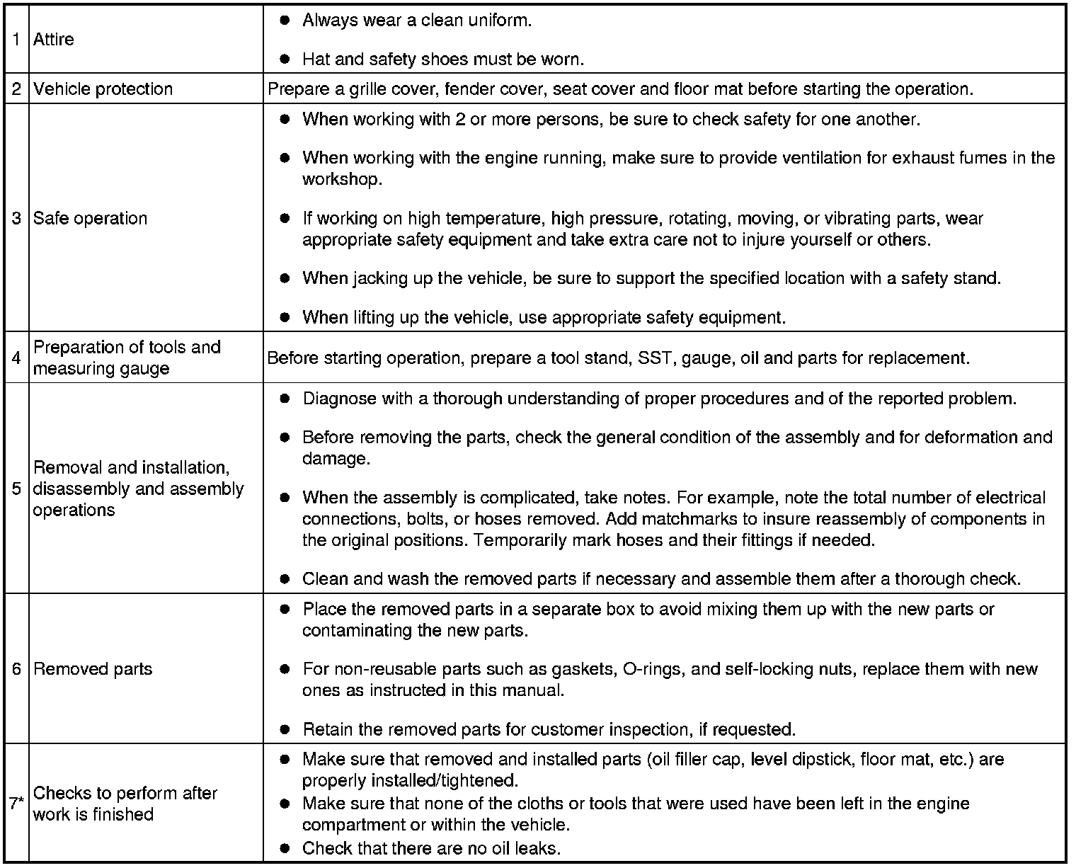 (2) Be sure to follow the instructions for work preparation and final confirmation of proper operation of the VSC system.
