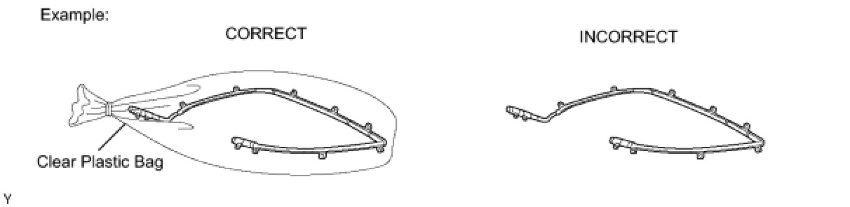 (1) Always place a removed or new curtain shield airbag assembly in a clear plastic bag, and keep it in a safe place.