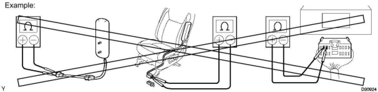 (1) Never measure the resistance of the seat outer belt. This may cause the pretensioner of the seat belt to activate, which could cause serious injury.