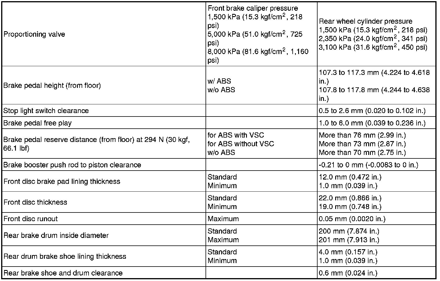 SERVICE SPECIFICATIONS: BRAKE: SERVICE DATA