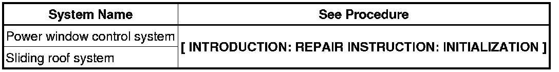 If either battery terminal is disconnected, the following systems must be initialized after the terminal is reconnected.