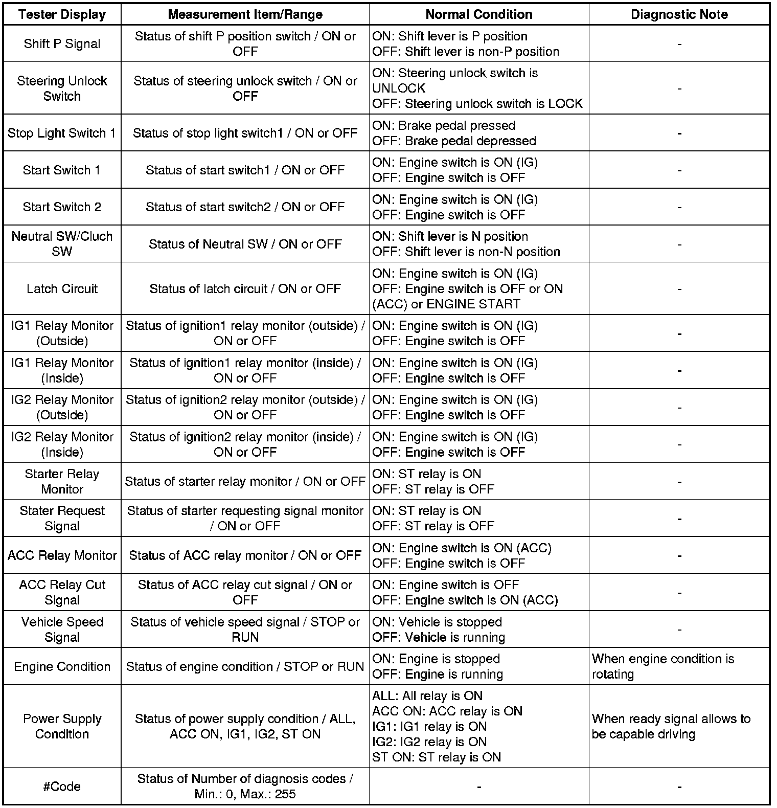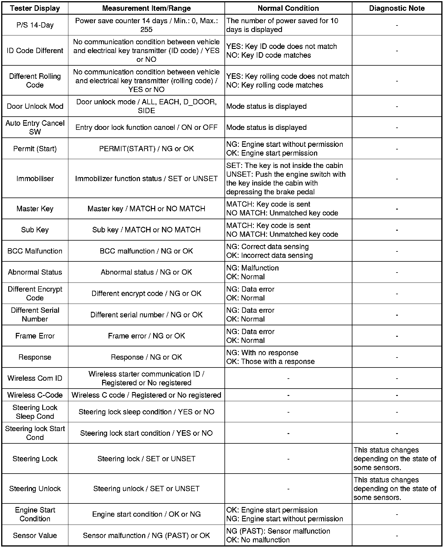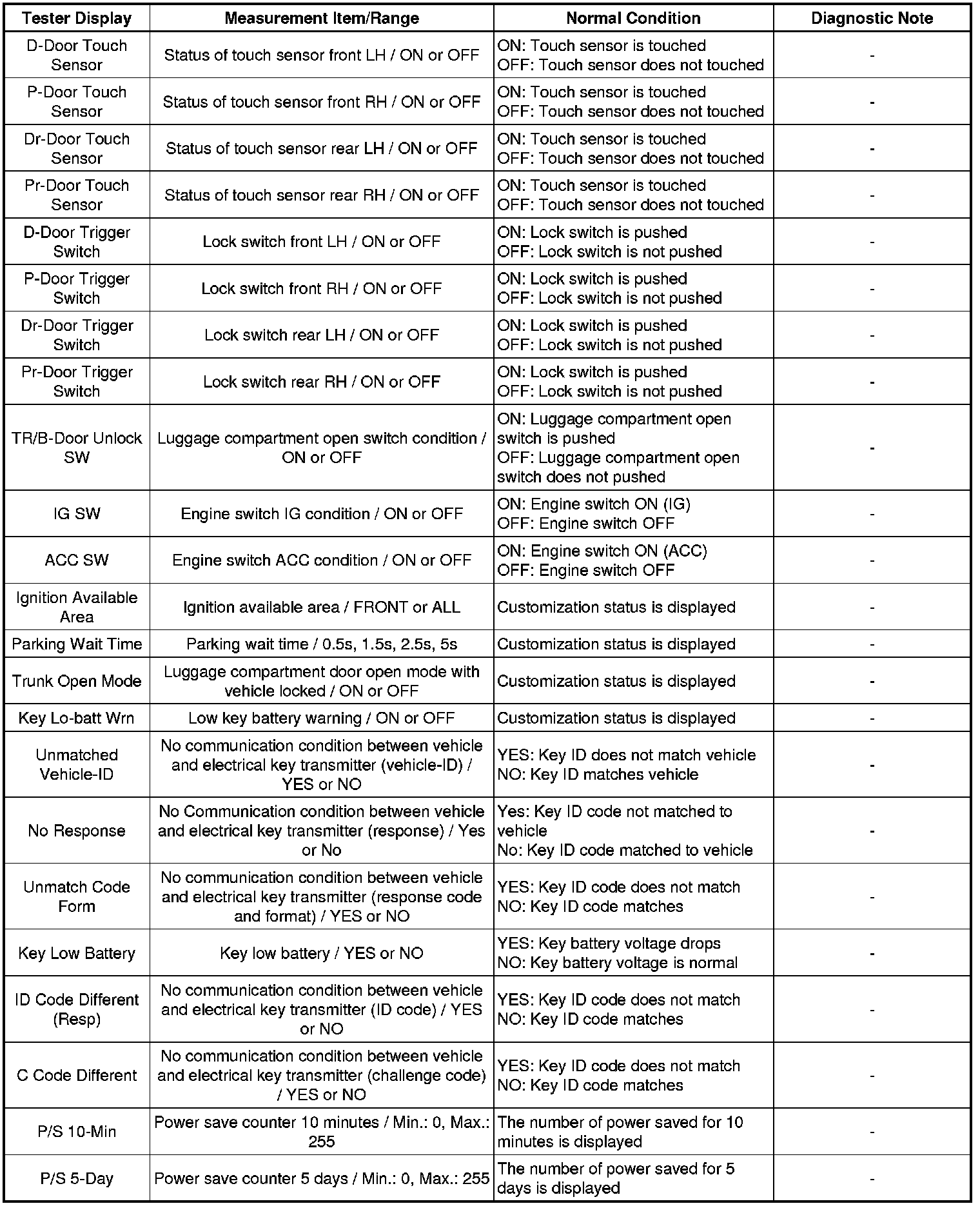 DOOR LOCK: SMART KEY SYSTEM: DATA LIST / ACTIVE TEST