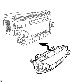 (a) Slide the air conditioning control assembly in the direction shown by the arrow to install the air conditioning control assembly.