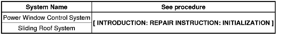 * When disconnecting the negative (-) battery cable, initialize the following systems after the cable is reconnected.