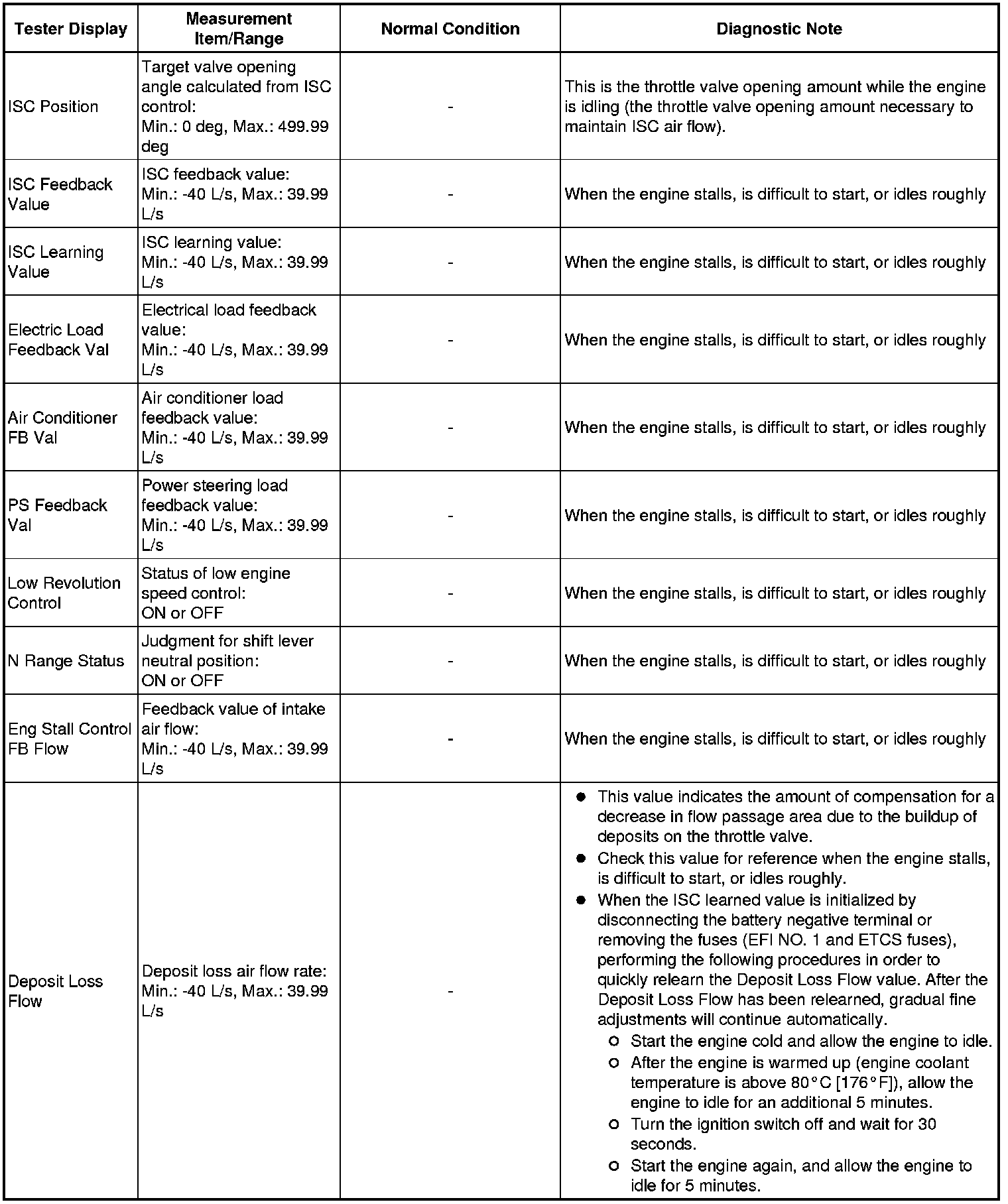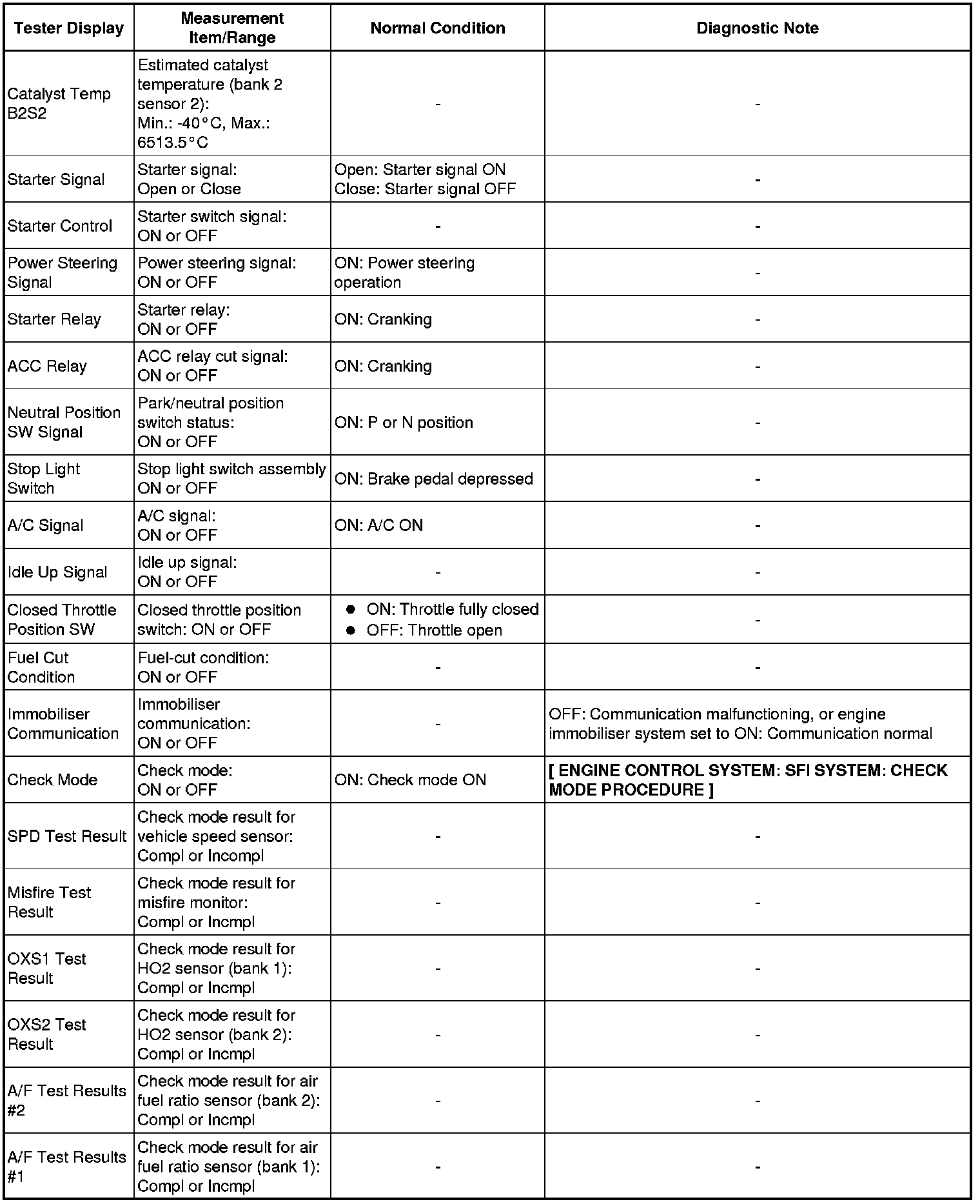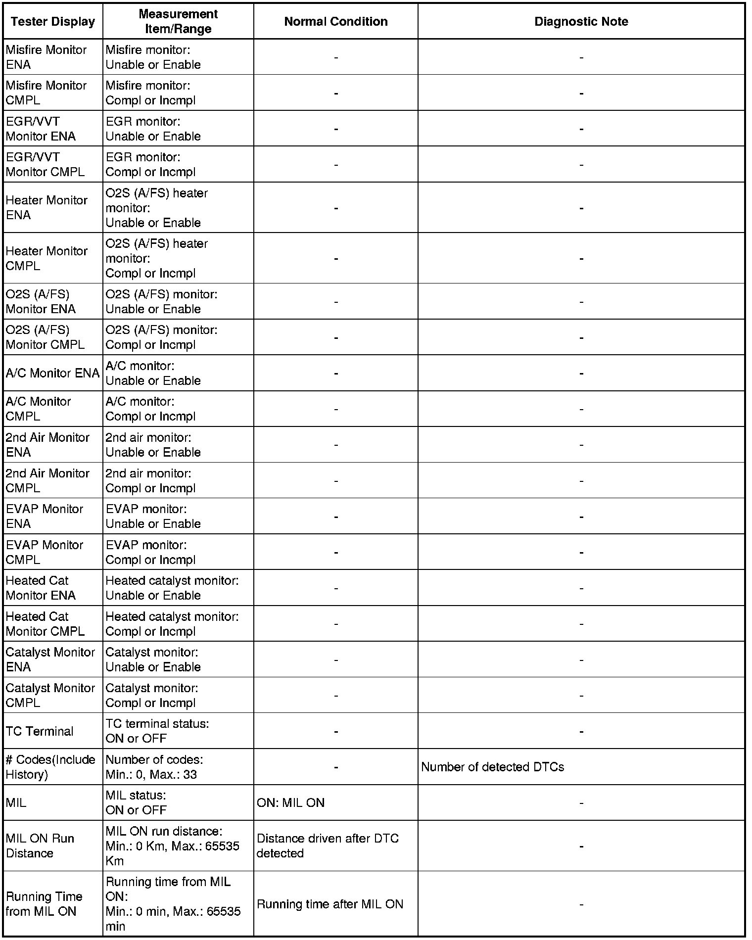 * Normal Condition: If no idling conditions are specified, the shift lever should be in the N or P position, and the A/C switch and all accessory switches should be OFF.