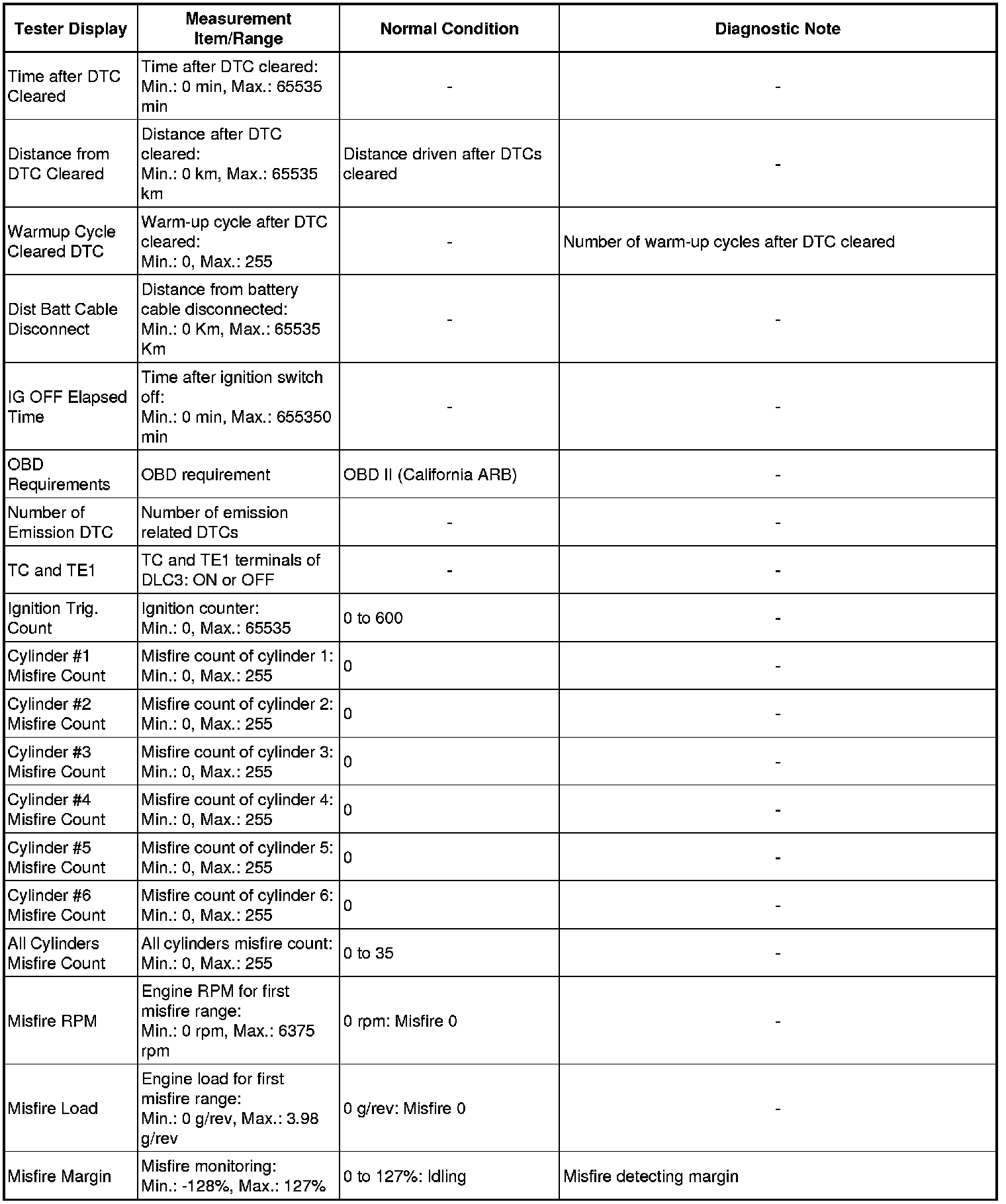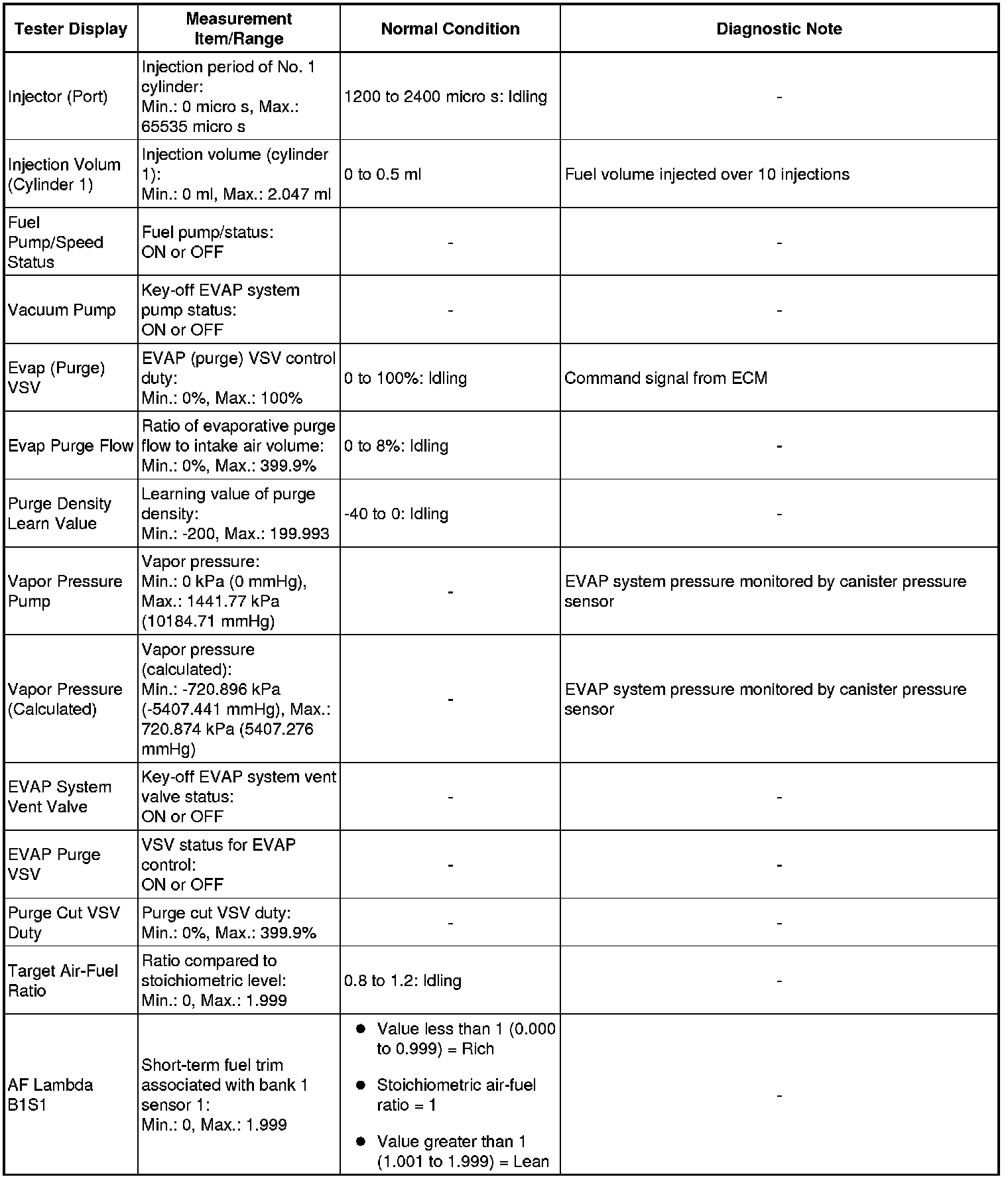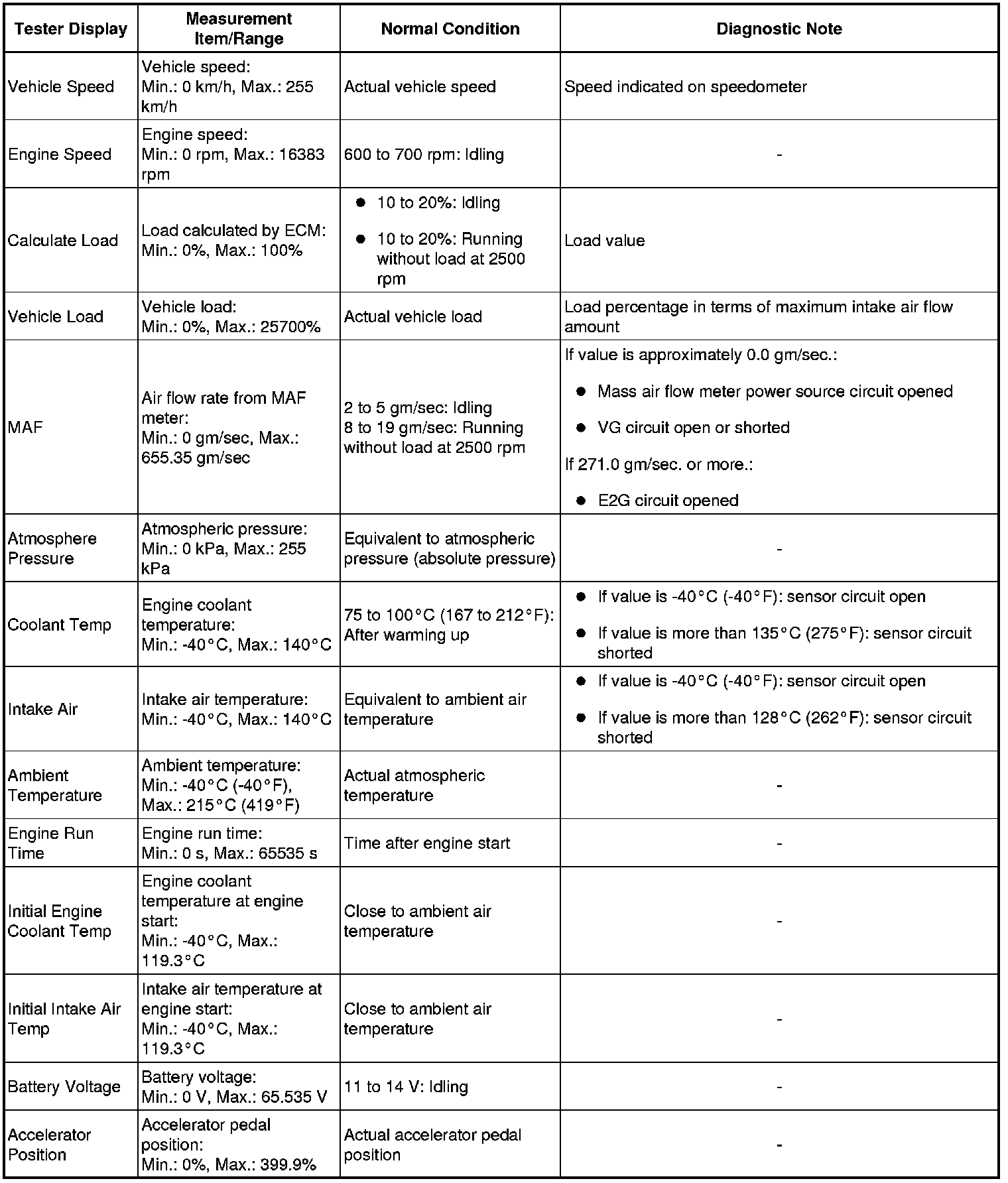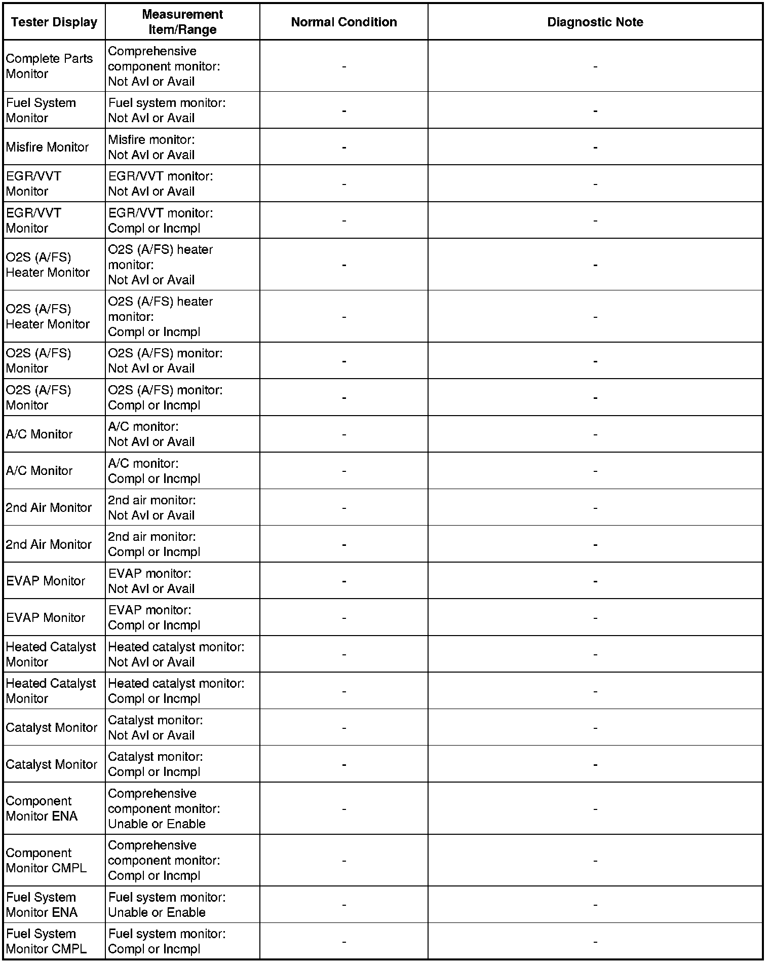 * Normal Condition: If no idling conditions are specified, the shift lever should be in the N or P position, and the A/C switch and all accessory switches should be OFF.