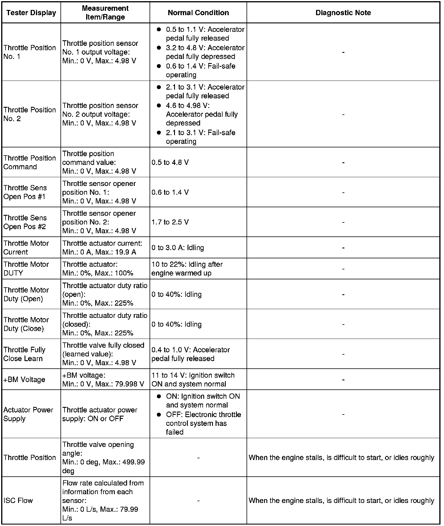 * *1: Excluding throttle valve opening percentage due to idle speed control.