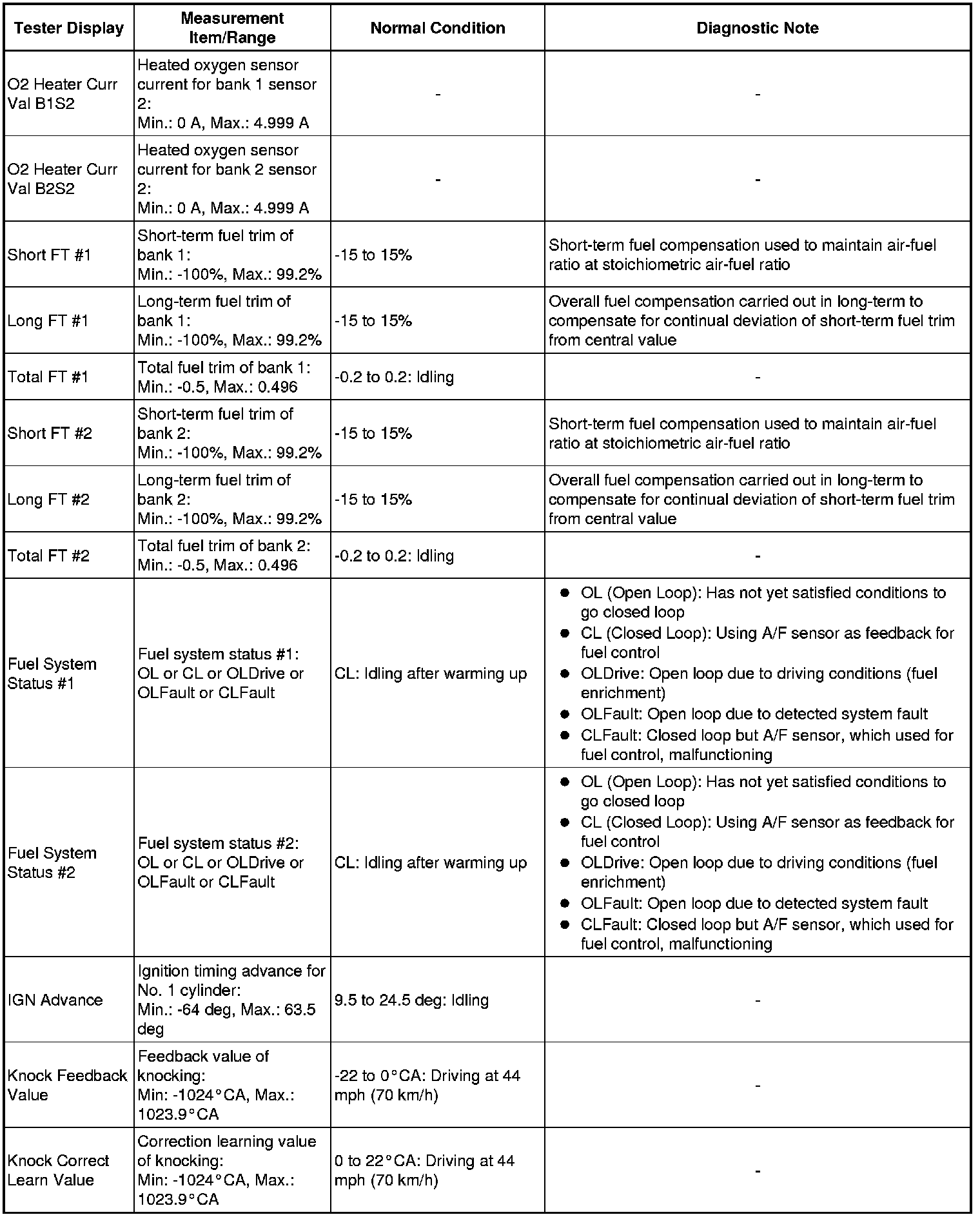 * *2: Data List values are displayed only when performing the following Active Tests: Control the VVT System (Bank 1), Control the VVT System (Bank 2), Control the VVT Linear (Bank1), Control the VVT Linear (Bank2), Control the VVT Exhaust Linear (Bank1) and Control the VVT Exhaust Linear (Bank2). For other Active Tests, the Data List value will be 0.