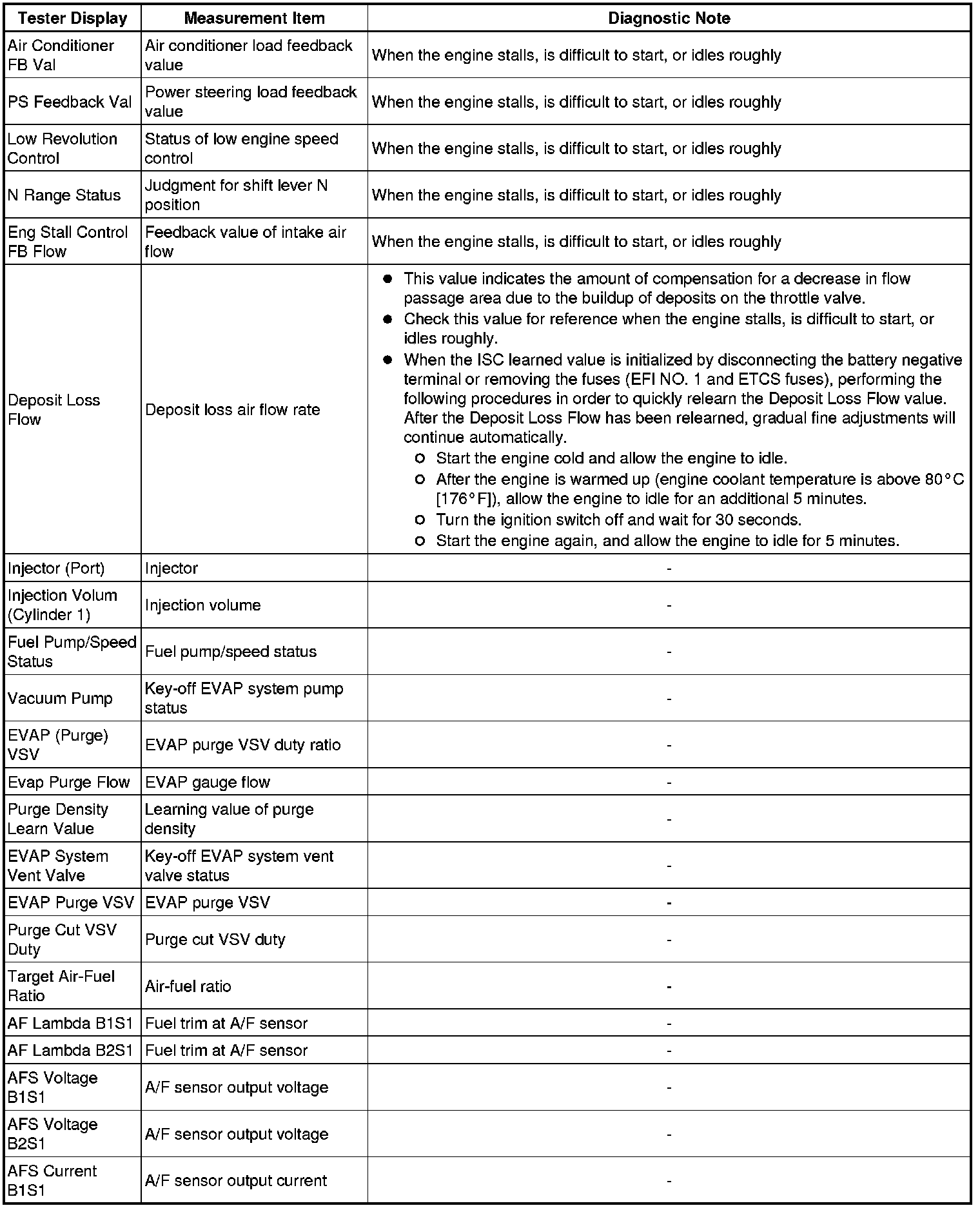 * The ECM records vehicle and driving condition information as freeze frame data the moment a DTC is stored. When troubleshooting, freeze frame data can be helpful in determining whether the vehicle was running or stopped, whether the engine was warmed up or not, whether the air fuel ratio was lean or rich, as well as other data recorded at the time of a malfunction.