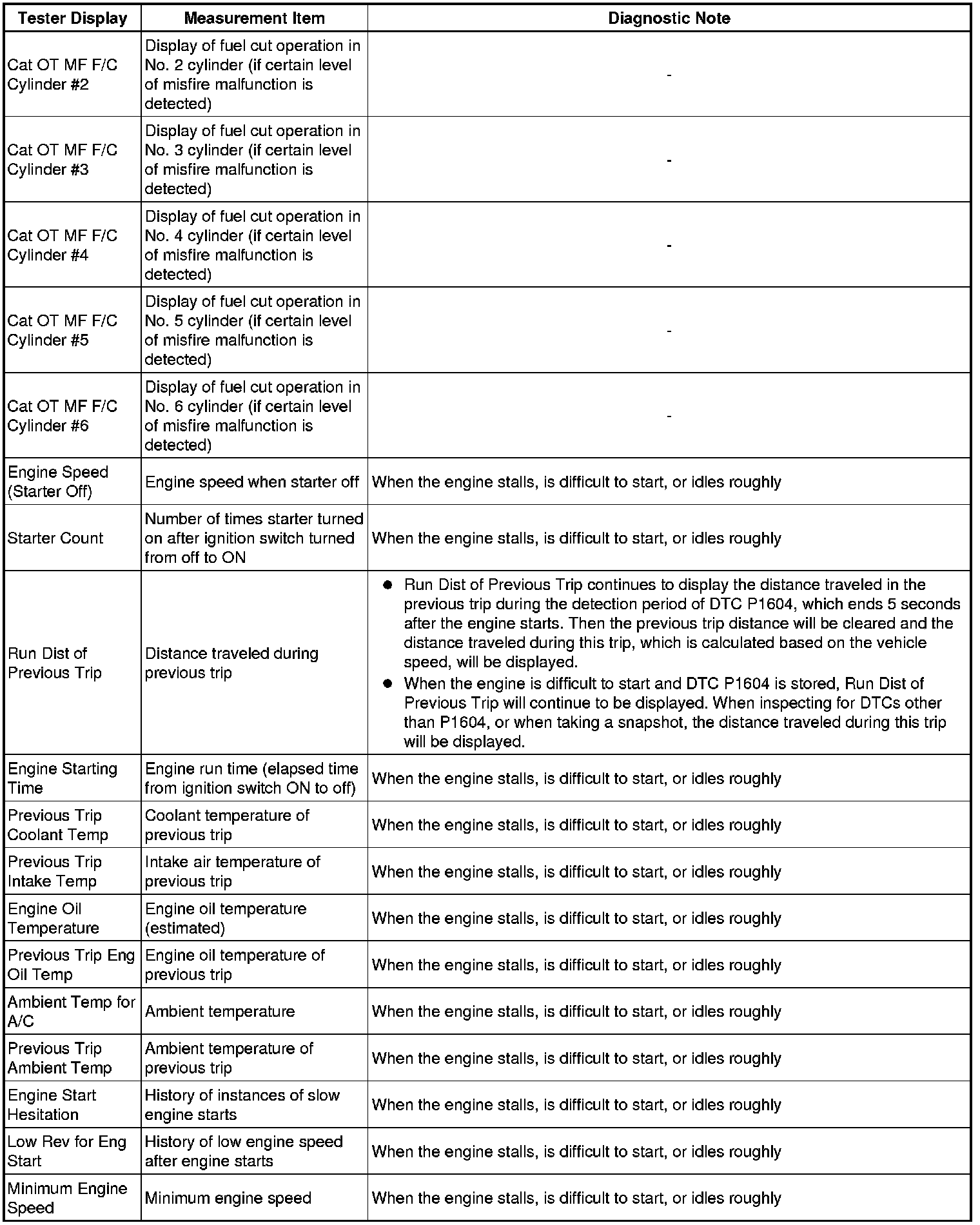 2GR-FE ENGINE CONTROL SYSTEM: SFI SYSTEM: FREEZE FRAME DATA