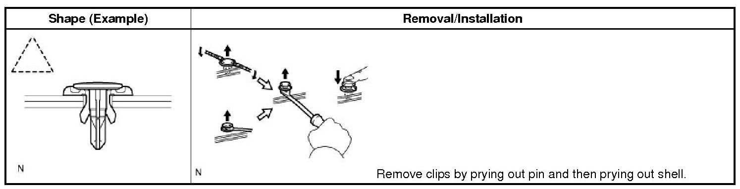(1) The removal and installation methods of typical clips used in body parts are shown in the table below.
