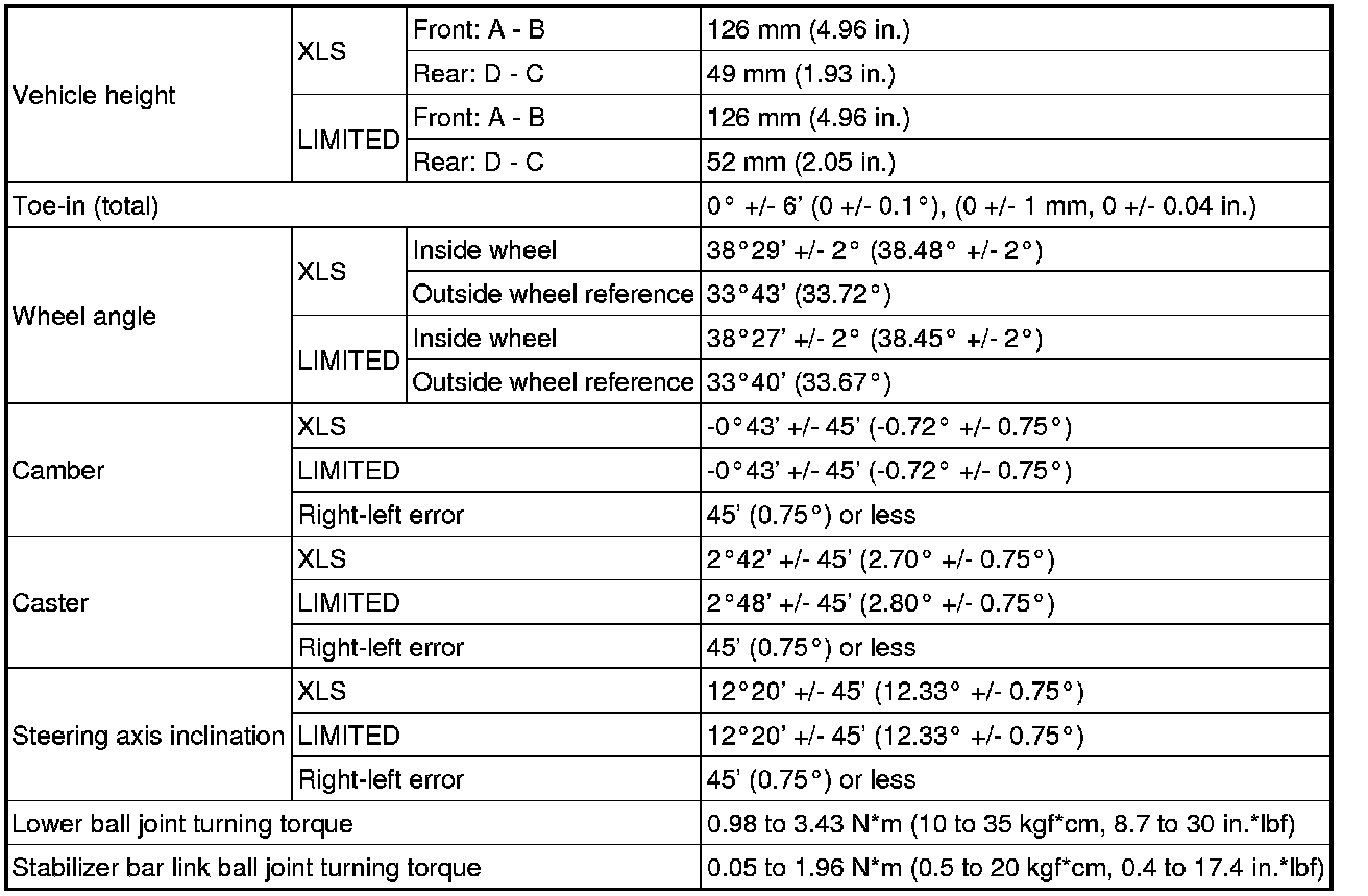 SERVICE SPECIFICATIONS: SUSPENSION: SERVICE DATA