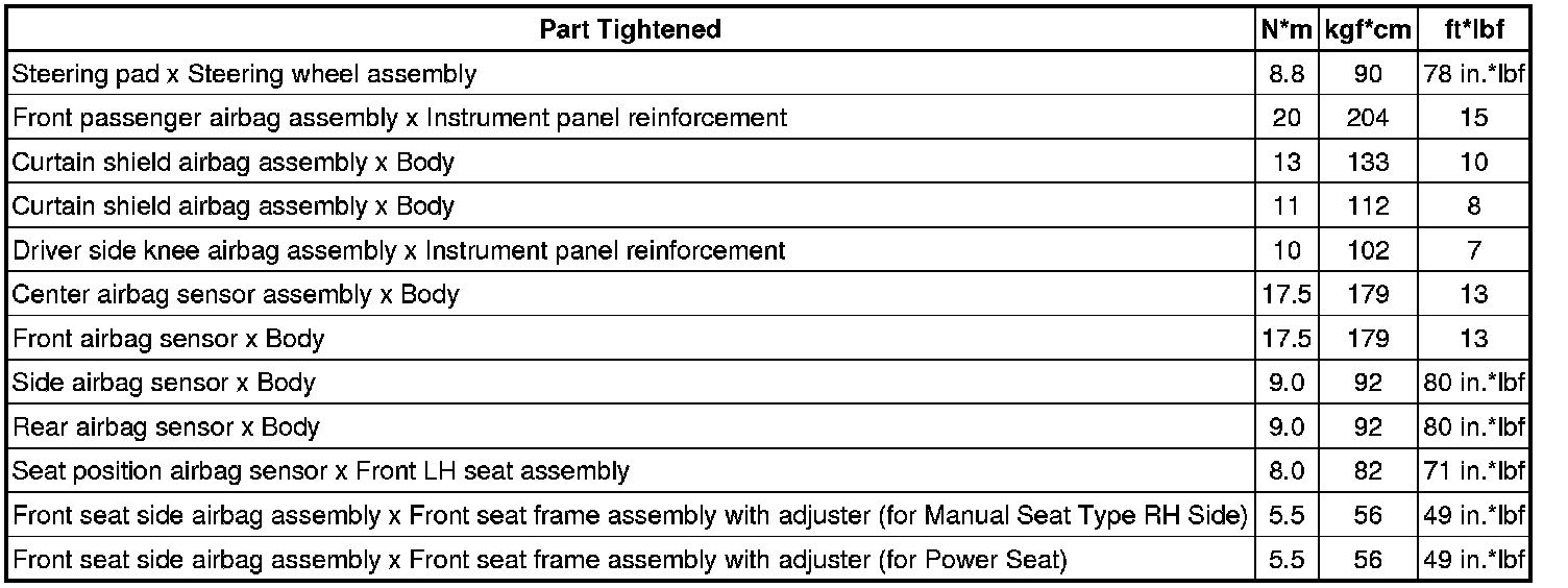 SERVICE SPECIFICATIONS: SUPPLEMENTAL RESTRAINT SYSTEM: TORQUE SPECIFICATIONS