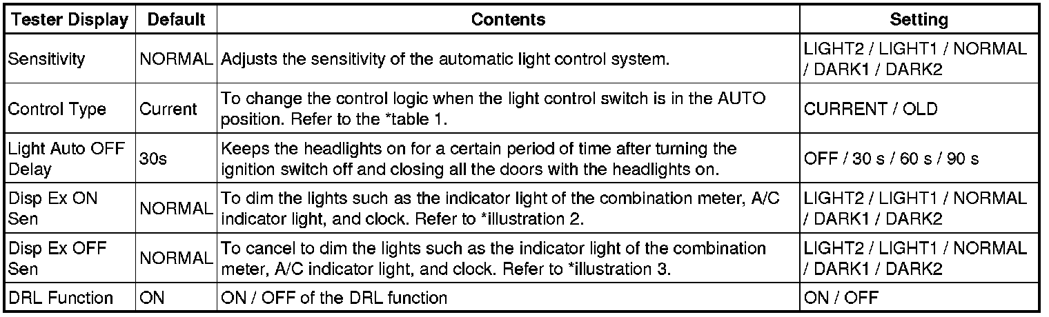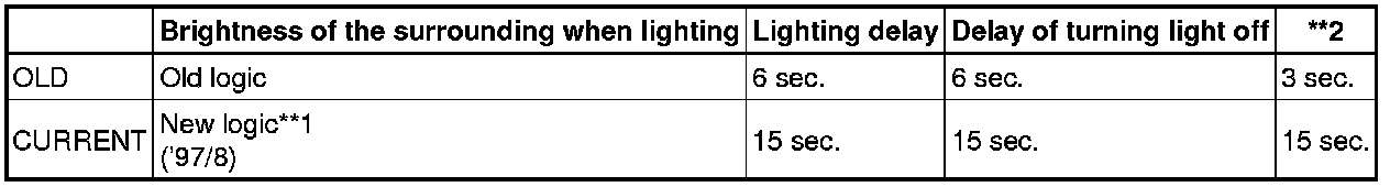 **2: Delay time until the headlight is turned on when the outside suddenly gets dark.