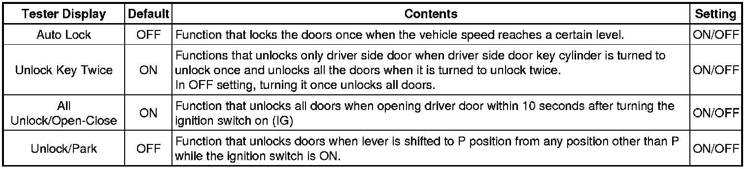 * To set function (Opening Driver's Door-linked Automatic Door Unlock)