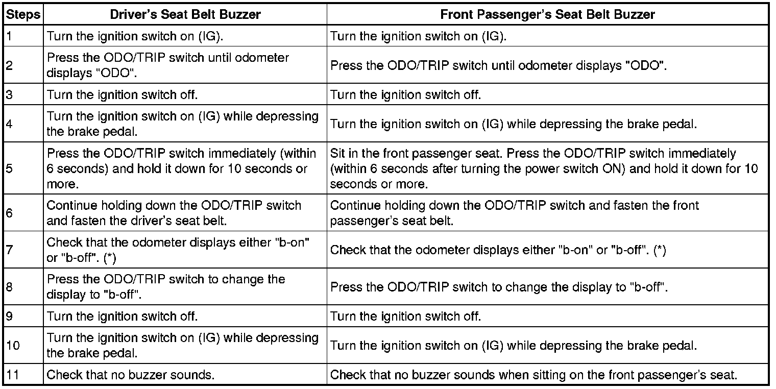 (1) The buzzer ON/OFF setting, which is a setting of the buzzer function of the combination meter, can disable the driver's seat belt buzzer and front passenger's seat belt buzzer.