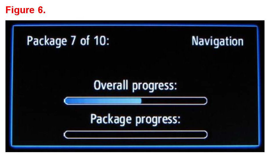 9. The Software update will begin and the screen will show a "Package 1 of 10" message and continue through 10 of 10. It will take approximately 13 minutes for the update to complete.